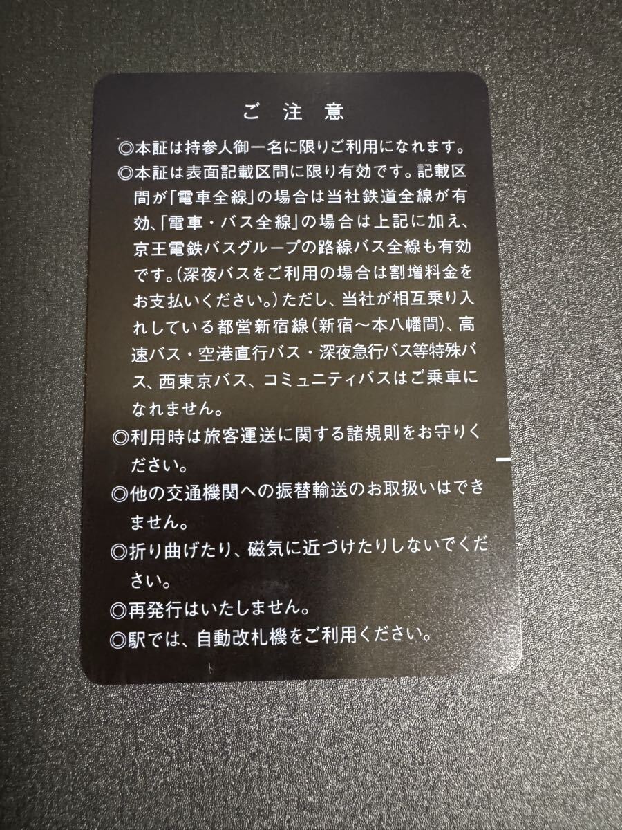 京王電鉄の電車、バス全線(※)をご利用いただける優待乗車証です。