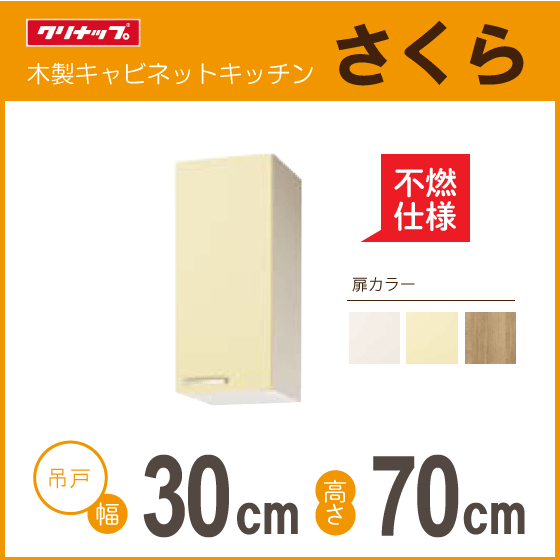 ★ クリナップ さくら 吊戸棚(不燃仕様)幅:30cm 高さ:70cm ★