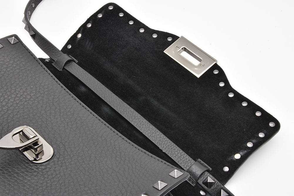 | 商品説明 | ヴァレンティノを代表するロックスタッズがデザインされたショルダーバッグでございます。金具部分・スタッズに細かなスレやキズ、外側底面に僅かな押し跡が見られる箇所がございます。内側に少々のスレが見られますが、目立つ大きなダメージはございません。 |