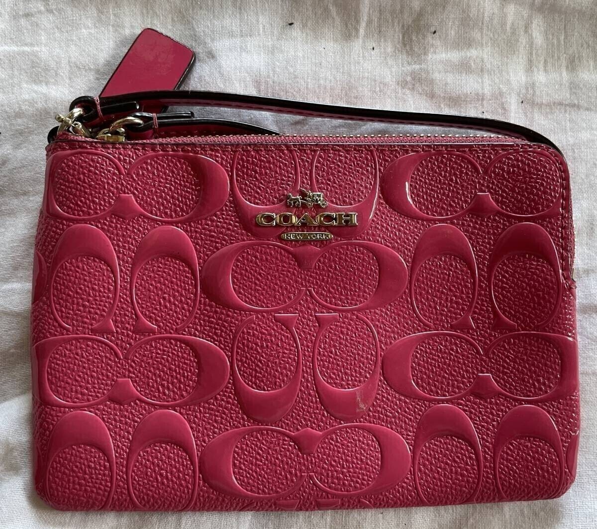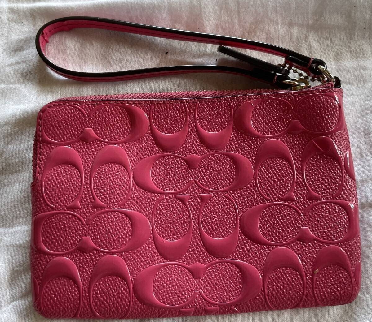 COACH コーチ シグネチャー デミポーチ エナメル 桃色 中古美品