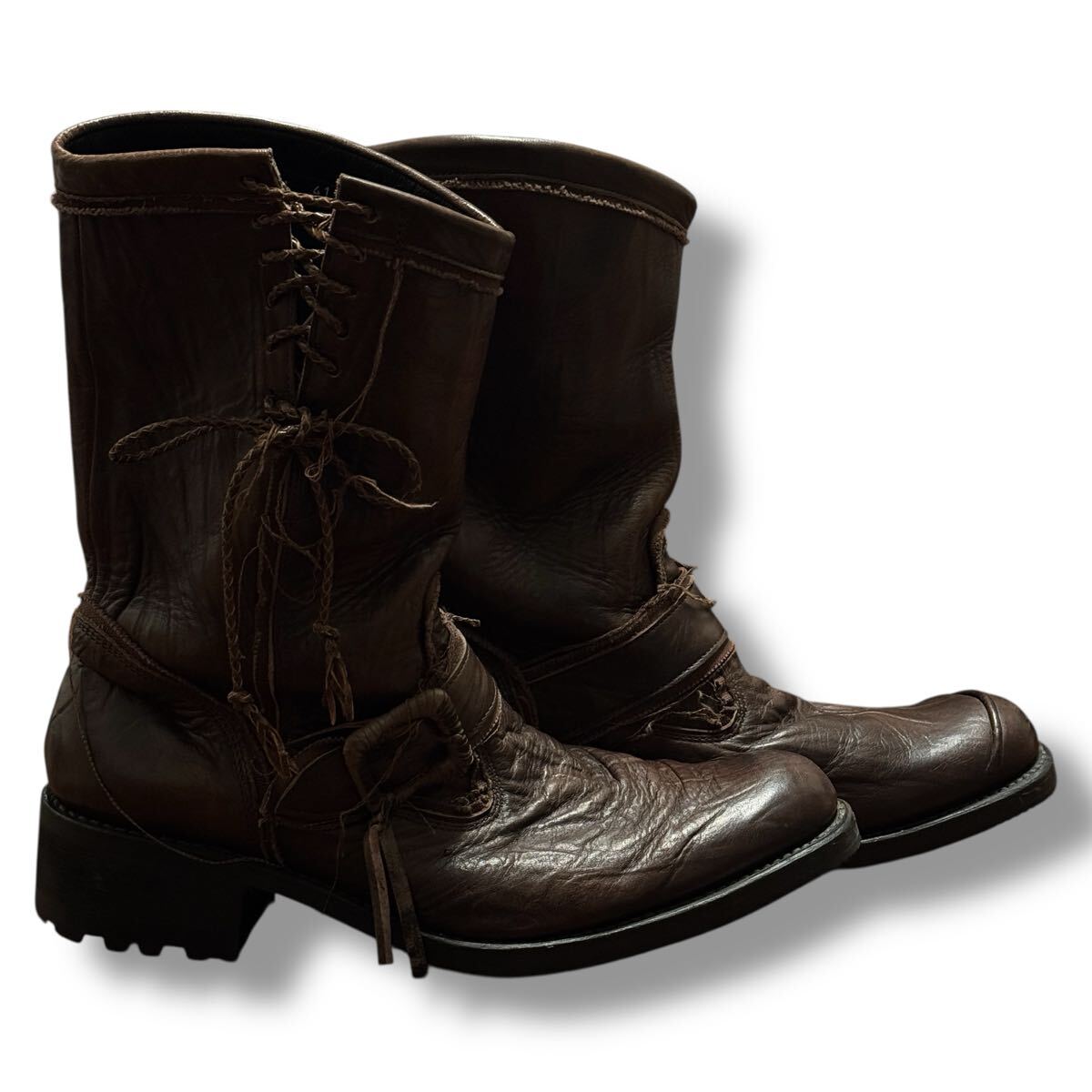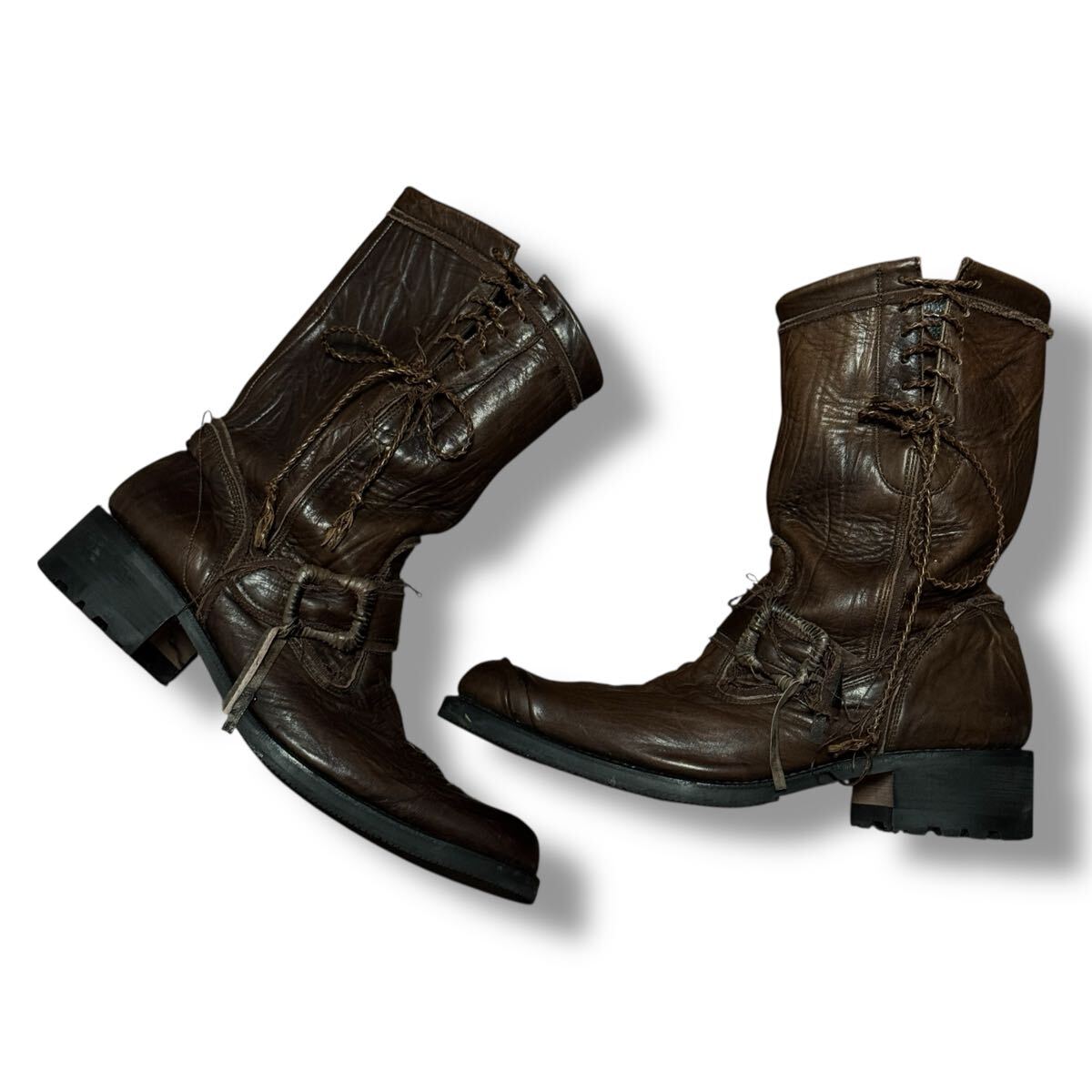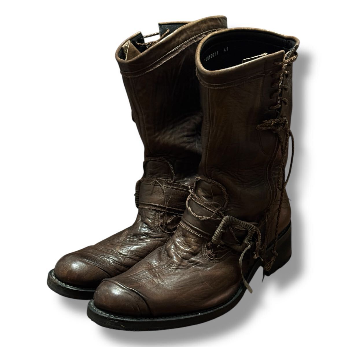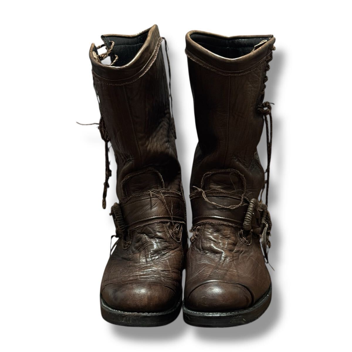 Giftur Crump(ギフチャークランプ) の希少なレザーエンジニアブーツです。独特のヴィンテージ加工とハンドクラフト感あるディテールが魅力で、アメカジ・モード・Y2K系のスタイリングにも相性抜群。