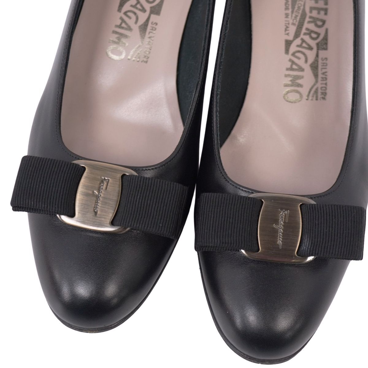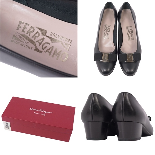 | 美品 サルヴァトーレ フェラガモ Salvatore Ferragamo パンプス ヴァラ レザー シューズ レディース 6.5C(24cm)ブラック |