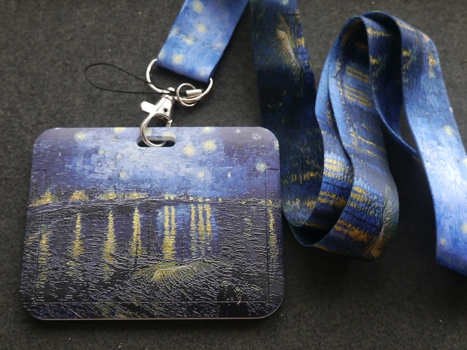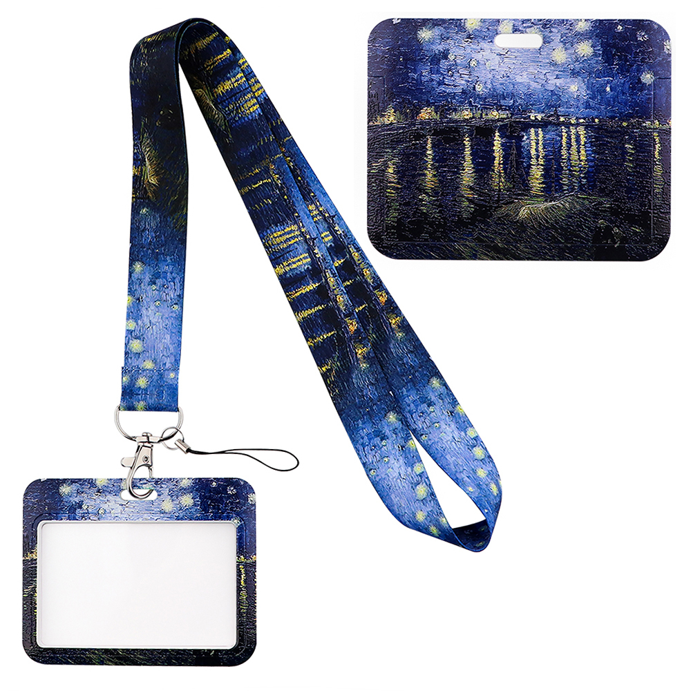 新品 ゴッホ ローヌ川の星月夜 IDカードホルダーケース付ネックストラップ 定期入れ カード入れ パスケース ICカードケース 社員証 学生証