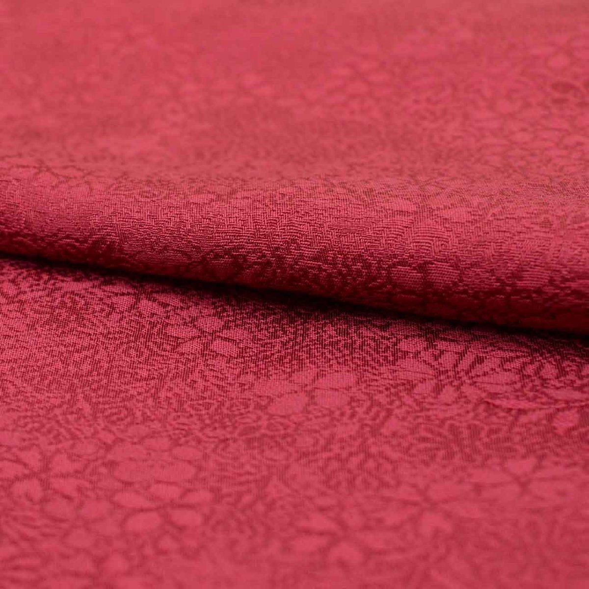 上質な正絹の絹糸で織り上げられた、深みのあるエンジ色の色無地でございます。洗練されたお洒落な雰囲気を纏い、様々なシーンでご着用いただける一枚です。エンジ色の正絹 (絹 SILK シルク)の色無地でお洒落な雰囲気です