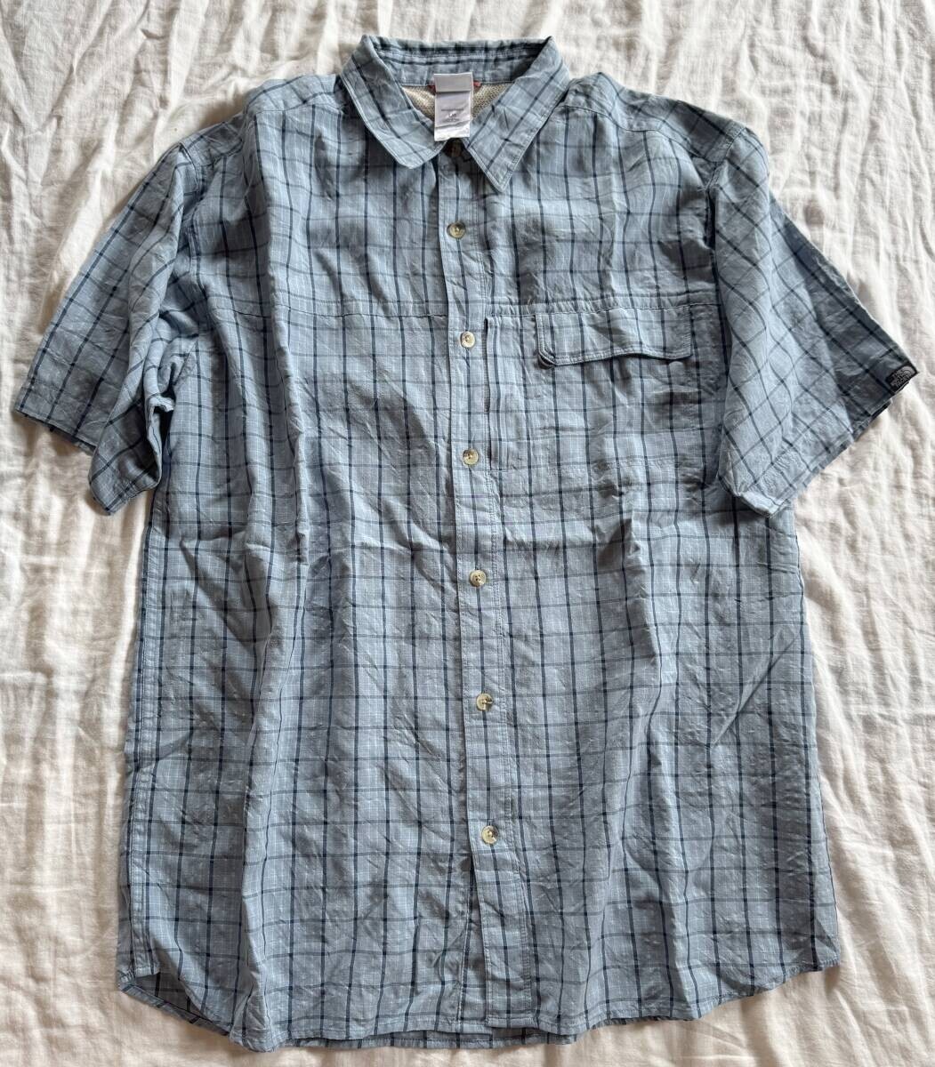 ノースフェイス シャツ 半袖 ブルー チェック L/G 柄物 大きめ