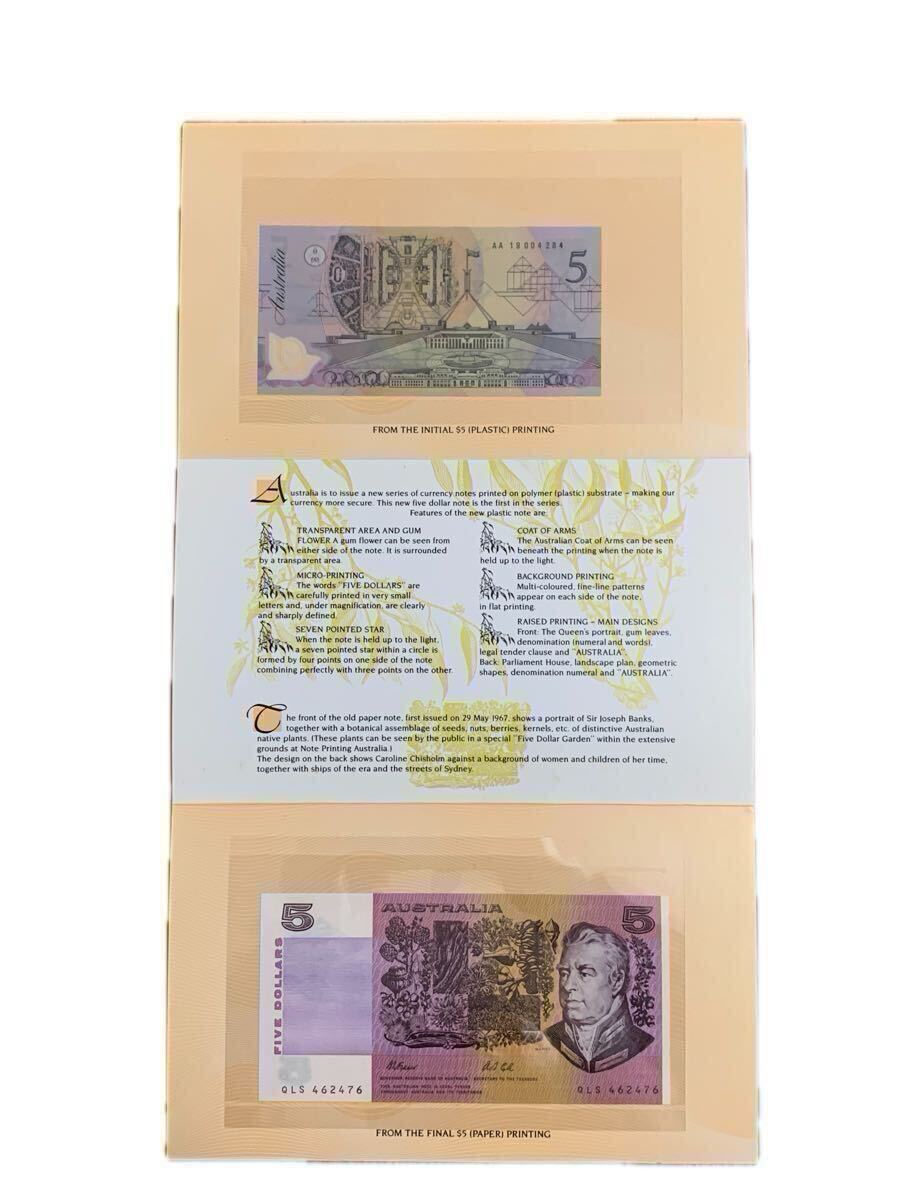 セットには、最後の紙製の5ドル紙幣と、最初のポリマー製の5ドル紙幣の2枚が含まれています。
