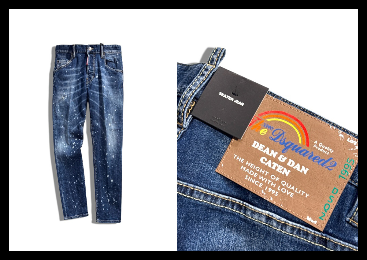 カナダ出身の双子の兄弟、ディーン・カートン(Dean Caten)とダン・カートン(Dan Caten)が手掛ける《DSQUARED2 - ディースクエアード - 》 モダン・ベーシックにイタリアンモードとアメリカンスポーツをミックスし、トラディショナルなアイテムをタイトにキュートにアレンジしたデザインが 特徴で、「自分たちが着たいものをつくる」というその主張でつくられたカジュアルウエアは、 多くの海外有名セレクトショップなどでも取り扱われております。 《ディースクエアード》は海外セレブ達に多くのファンを持ち、ブリトニー・スピアーズのツアー衣装をデザインし、 バンクーバーオリンピックにてカナダ選手に衣装を提供するなど、活躍の場を広げディースクエアードの顧客には リッキー・マーティン、ニコラス・ケイジ、ジャスティン・ティンバーレイクなど数々の海外セレブ有名人にも愛用されるブランドです。 そんな《DSQUARED2 - ディースクエアード - 》の、ヴィンテージライクなスプラッシュペイント&ウォッシュ加工デニムパンツ。 シルエットはスケートの動きを意識した気持ち深めの股上(セクシーツイスト程度の深さ)に 程よく効いたストレッチ生地が活きるテーパード。 腿は細身ですが、パツパツになるような細さではなく程よくタイト(クールガイ程度)。 そして、一気にテーパードした膝下はDSQUARED2至上一番細く、クレメントを凌駕するエッジの効きよう。 美しく魅力的なラインを描くシルエットがクールかつラグジュアリーな装いを演出してくれる1本。 上質なストレッチデニム生地の深いインディゴに、まるで夜空の星を散らしたかのようなホワイトのペイントスプラッッター。 単なるウォッシュでは出せない、奥行きのある色合いと、計算され尽くしたブリーチ加工が着こなしに立体感と動きを生み出します。 そこに、巧みなクラッシュ等の数々の加工が施されており、圧巻の存在感を放つ仕上がり! 上質なコットンにポリウレタンを混紡したストレッチデニム素材を採用しており、 見た目のタフさとは裏腹に、驚くほどしなやかで、一日中ノンストレスな履き心地を実現。 愛車を運転する時も、フットワーク軽く街を闊歩する時も、周囲と差がつくこと請け合いなデニムとなりますので、この機会に是非ご検討ください。 もちろん新品未使用正規品ですので、安心してお求めいただけます。 |