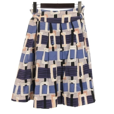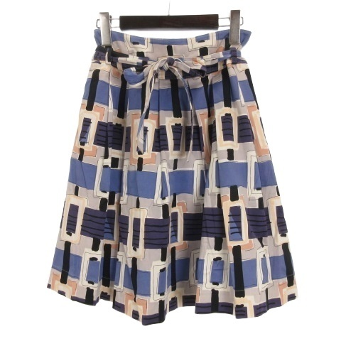 ローラアシュレイ LAURA ASHLEY 総柄 スカート ミディ丈 1 ブルー 251128E ■GY43 レディース