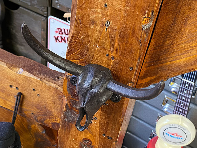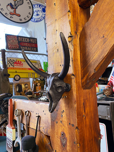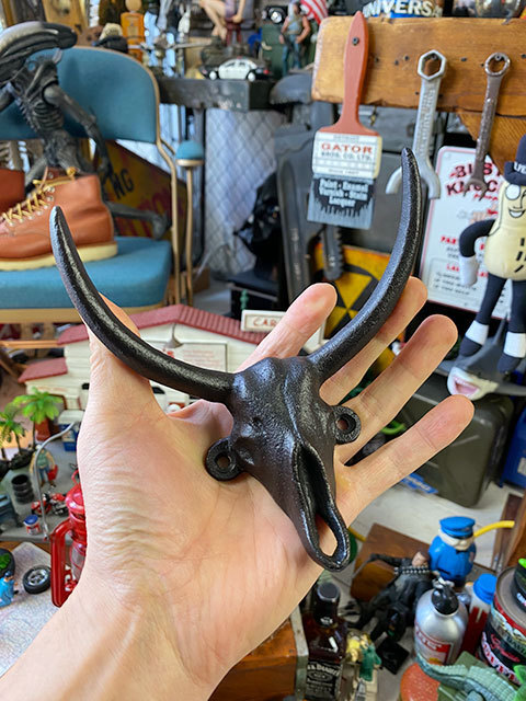 ウエスタンショップなんかに飾ってあるあのブルスカルの飾り物をモチーフにしたアイアン製のフックです。