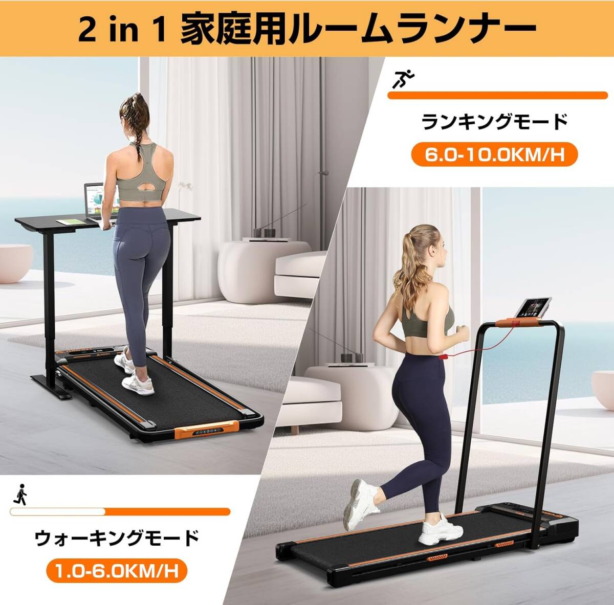 黒オレンジ色 最高のプレゼント ルームランナー-AIRHOT ウォーキングマシン MAX 6km/h ランニングマシン