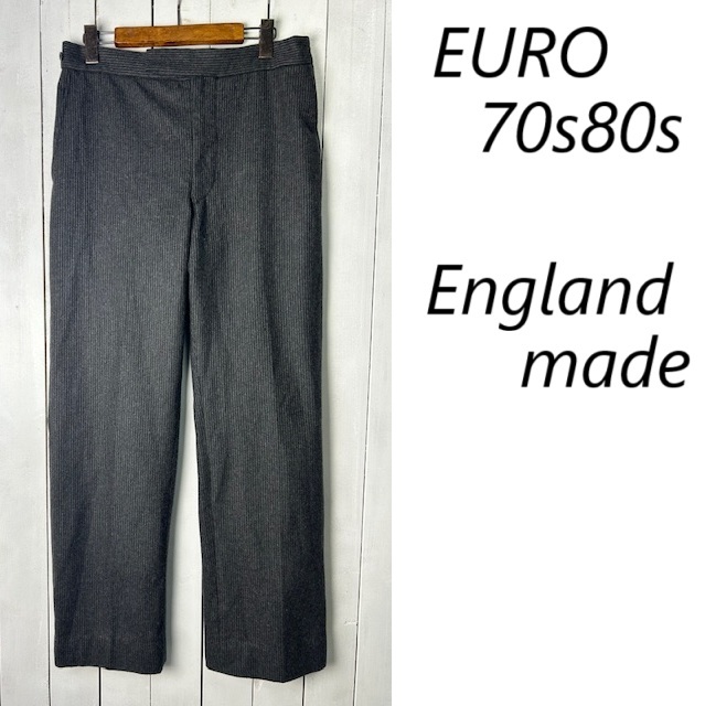 ヨーロッパ古着 ~70s80s イングランド製 ピンストライプ ウールスラックス M程度 グレー トラウザーズ ヴィンテージ 秋冬 イギリス製●304