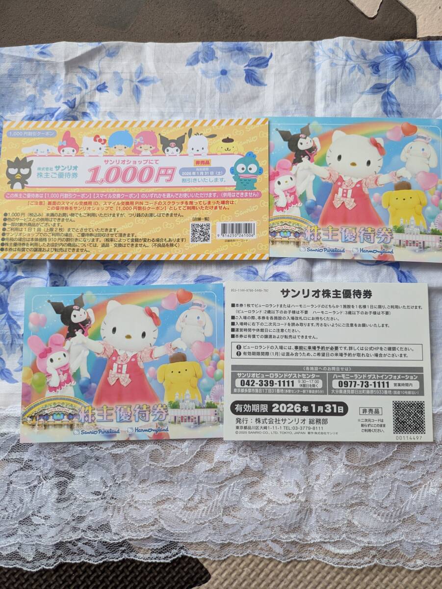 サンリオショップで使える1000円割引券です。1000円以内のものも購入可能(お釣りは出ません)。ピューロランドのお土産屋さんでも使えます!