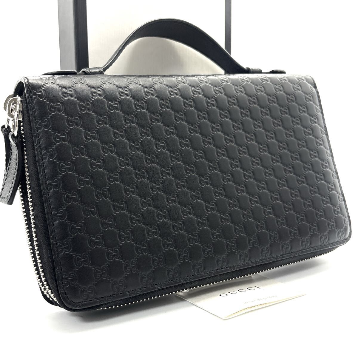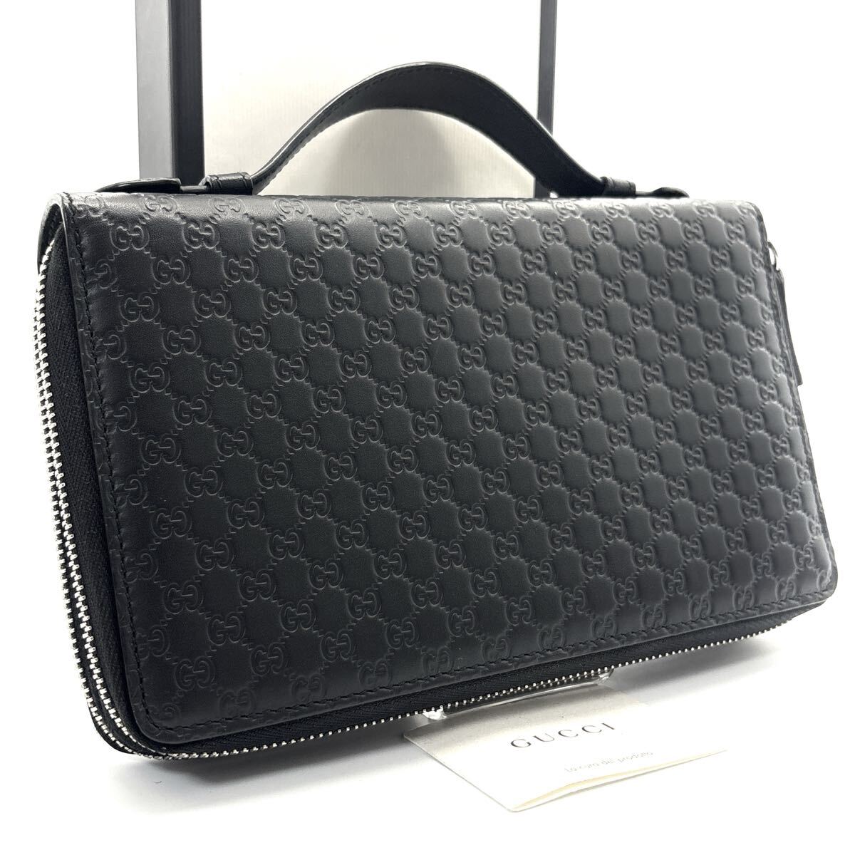 未使用級◆GUCCI グッチ オーガナイザー GGスプリーム マイクロシマ 長財布 セカンドバッグ ブラック 黒 メンズ