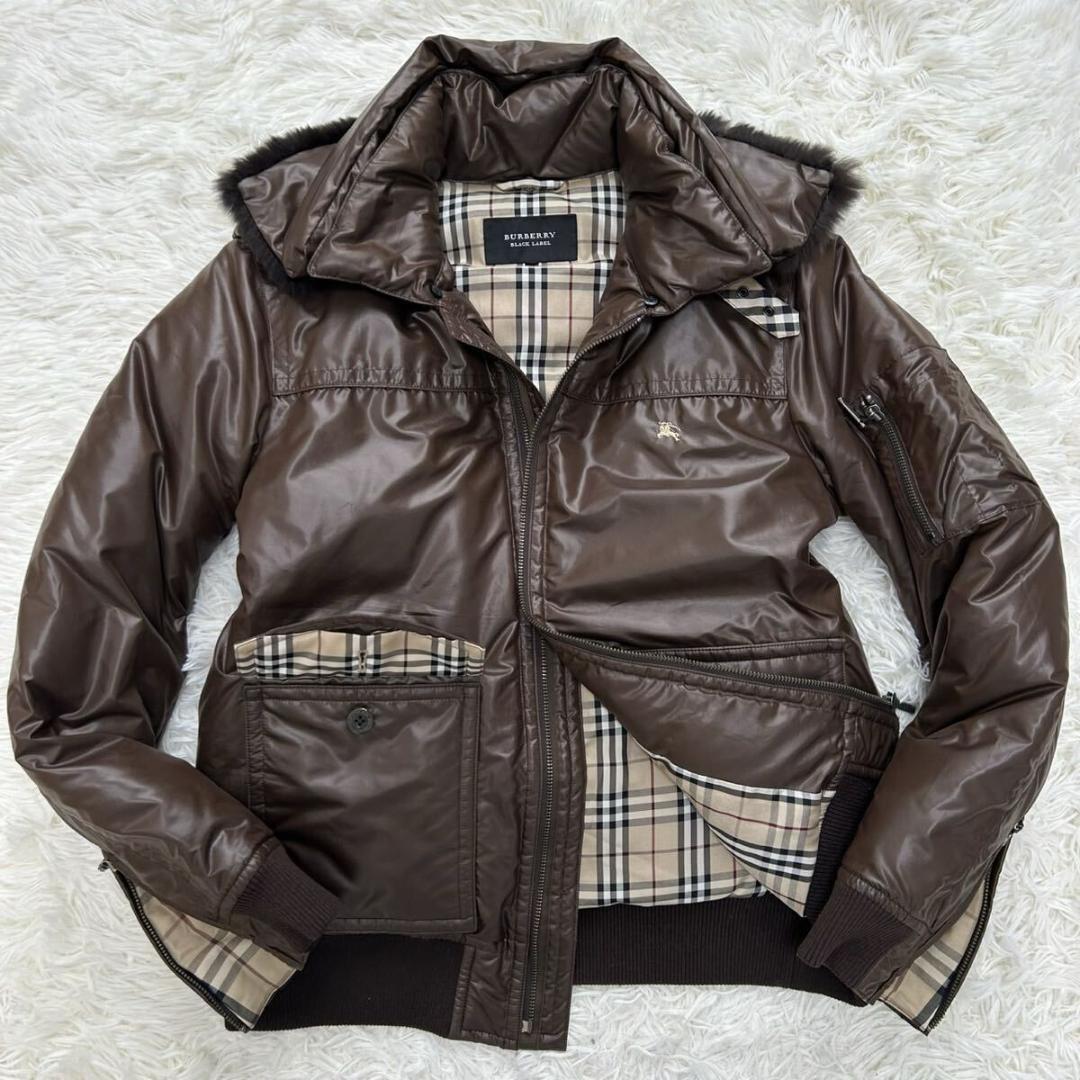 三陽商会 ノバチェック ノバ フード ファー ラビットファー フード取り外し可 ワンポイント刺繍ロゴ