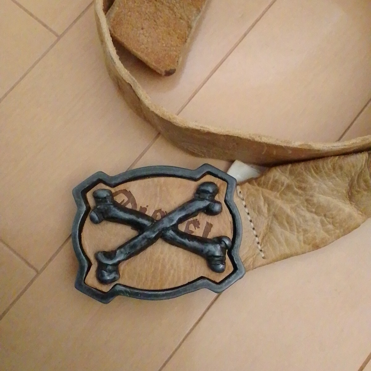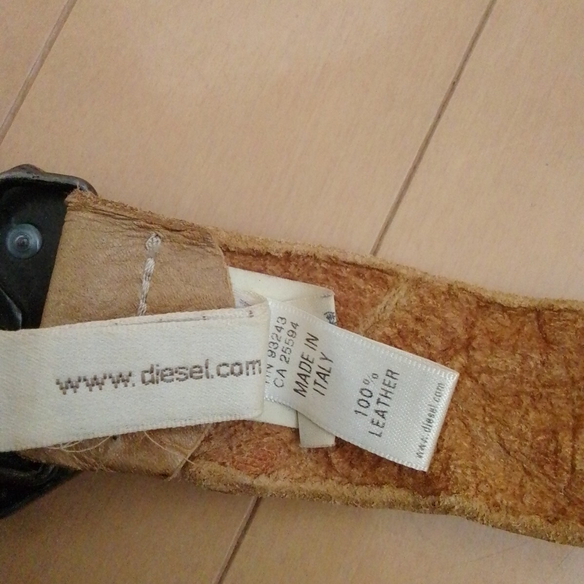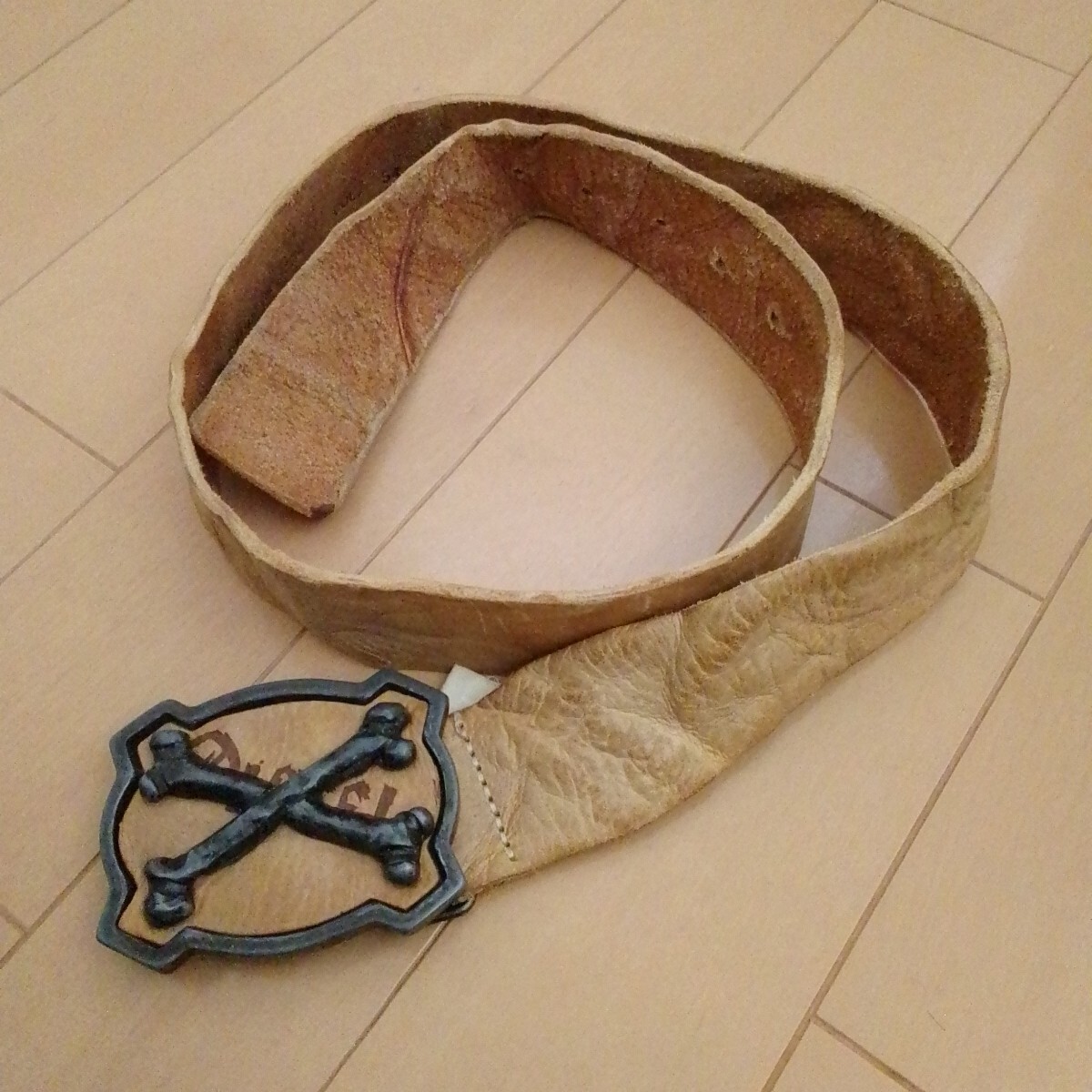 DIESEL ディーゼル レザーベルト クロスボーン ウォッシャブル バックル レザー イタリア製 革 サイズ90