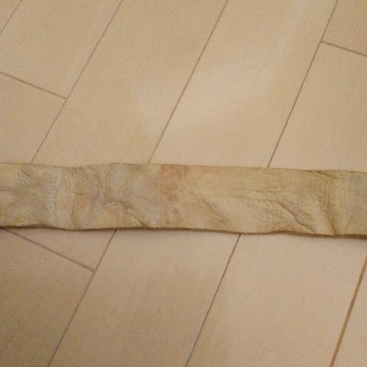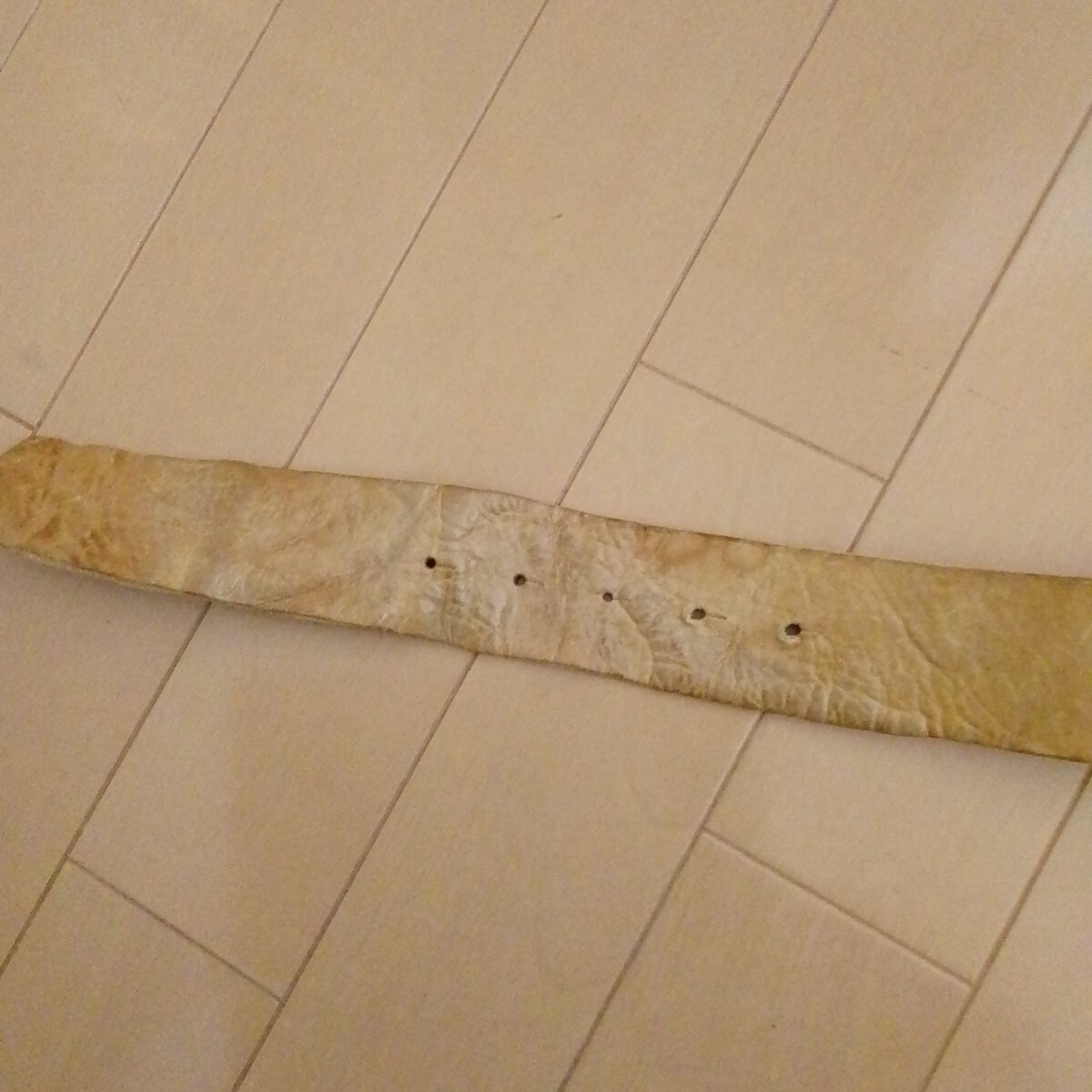 平置きで、ベルトの穴に入れる突起部分からレザーの穴までの最大長さ約94cm、最小約84cmくらいです。
