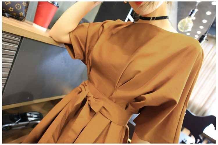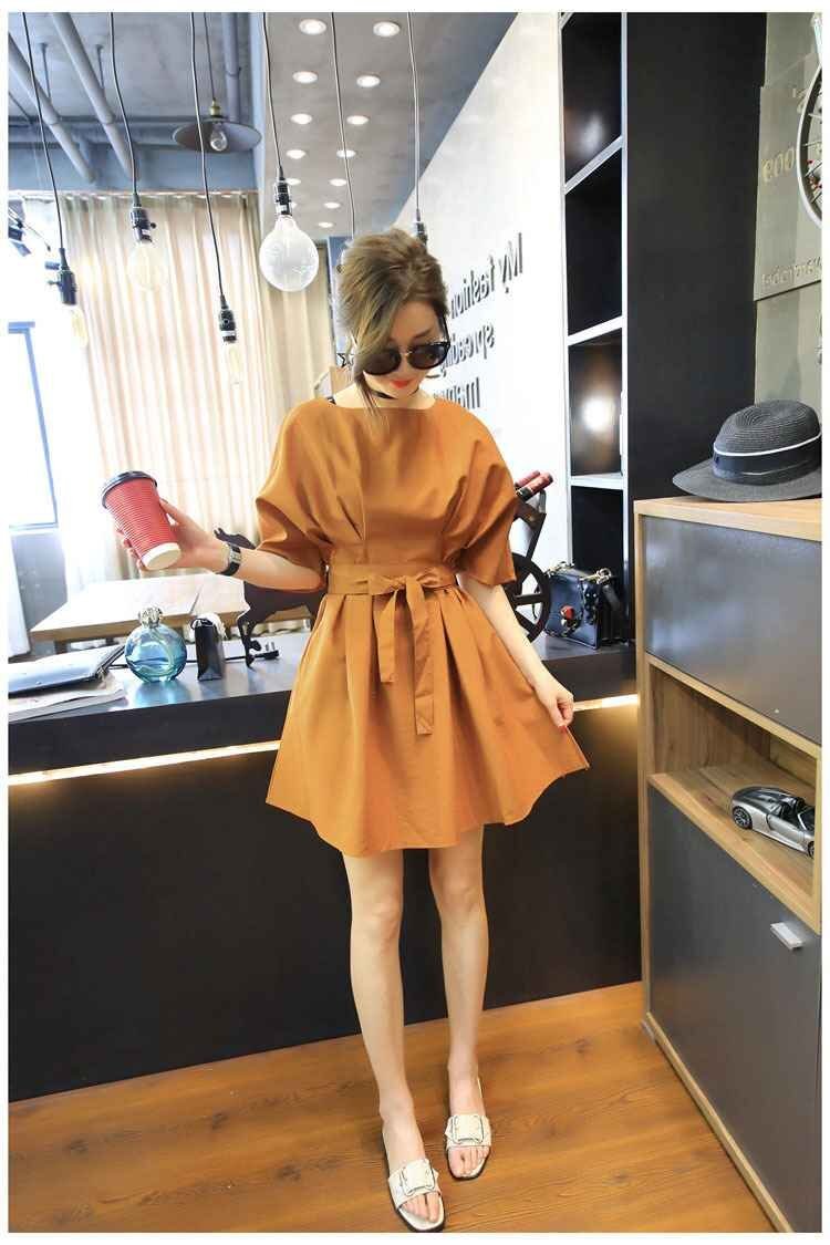 大きめのラウンドネックはデコルテ美人を叶えてくれて、ウエストはベルトで調節して、メリハリをつければ◎。袖もふんわりデザインで、二の腕や上半身の体系カバーができます。