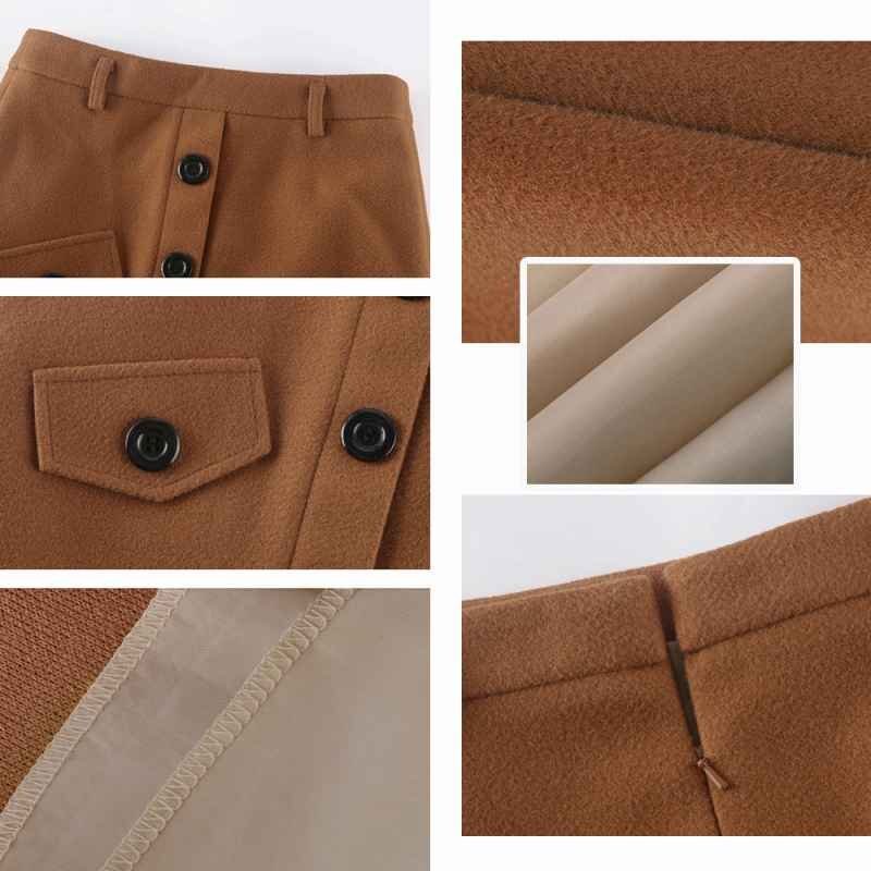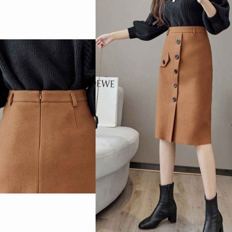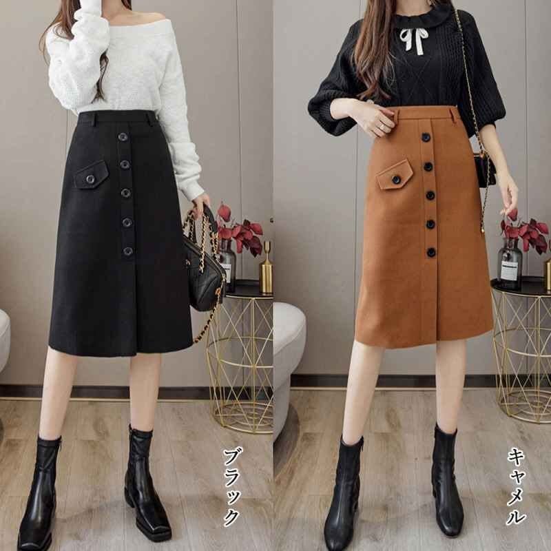 前のポケットと一列のボタンがさびしくなりがちなスカートにアクセントを加え、タイトシルエットにフロント部分スリットがあるので、通勤時の階段の昇り降りも楽々!