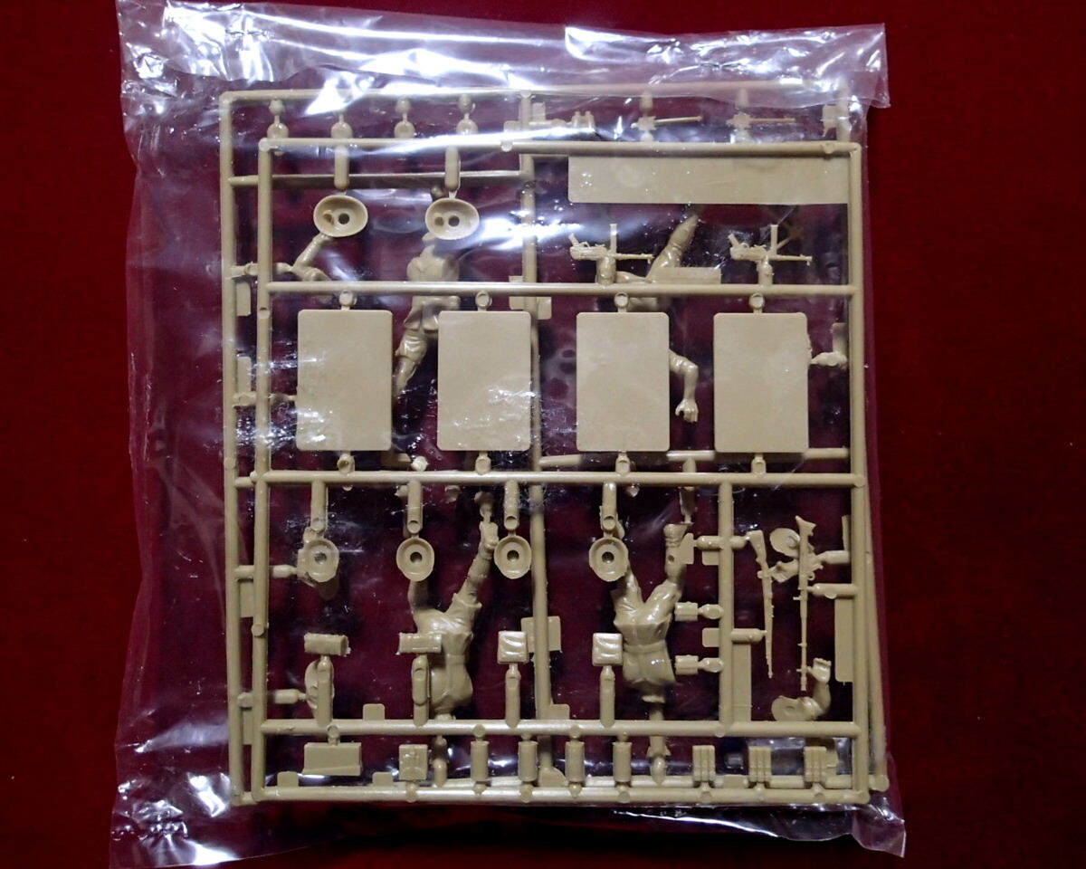 ●北アフリカ戦線で激戦を繰り広げたドイツ アフリカ軍団の兵士(4体)がセットされています。前進指示を出す将校やMP40で援護射撃する下士官、MG34機関銃や弾薬箱を運ぶ機銃手と装填手が躍動感あるポーズで再現されています。KAR98KライフルやMP-40短機関銃のほか、兵士装備品類も付属しています。