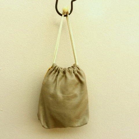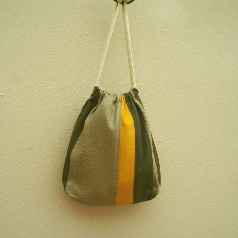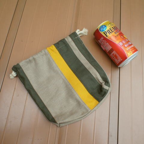 【入学、入園!】500円カーキパッチワーク巾着袋 【手作り小物】