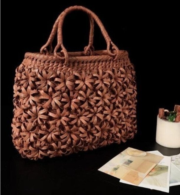 希少新品!極美品★高級UPハンドバック 職人手作り良品 山葡萄かごバッグ 手編み山葡萄籠バッグ バスケット籐かご