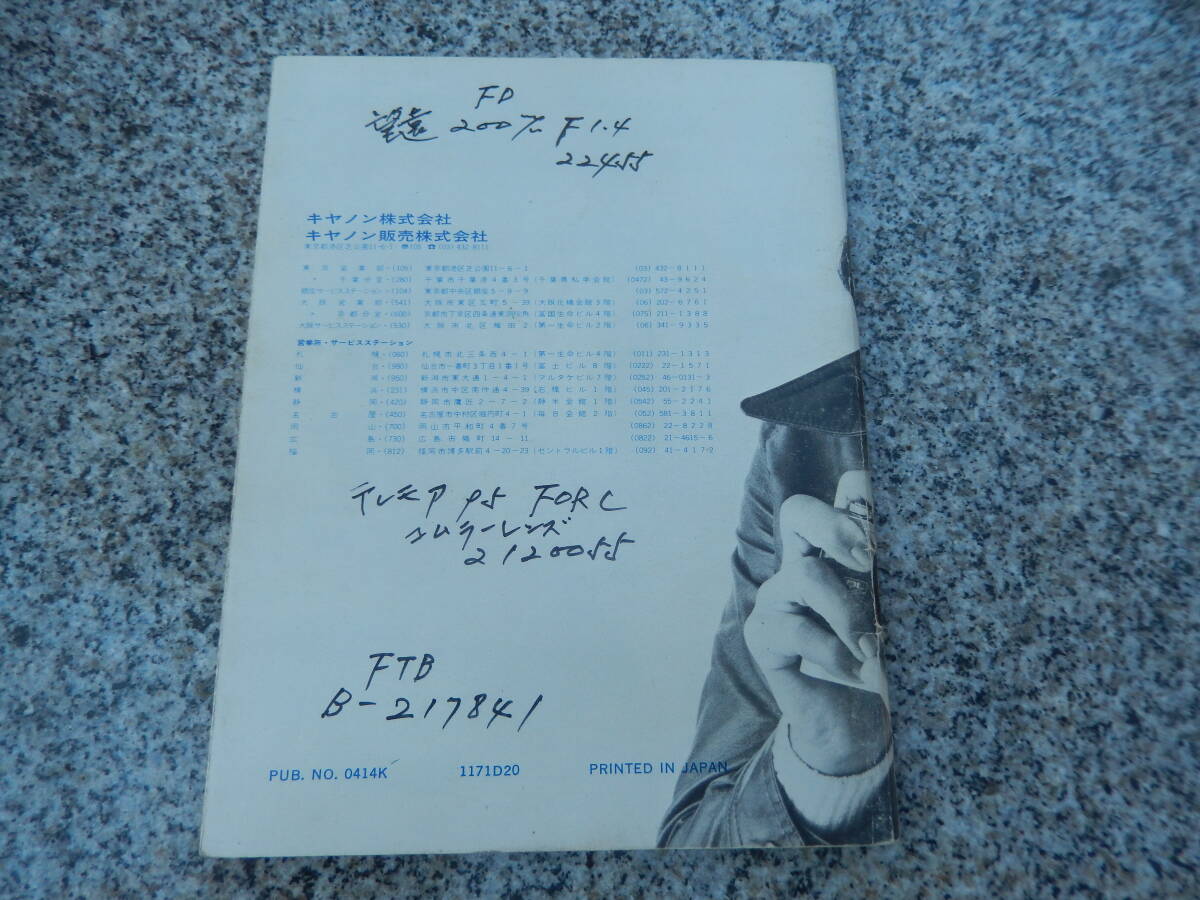 CANON FTb使用説明書 縦15.6cm×横12cm、全59頁。裏表紙に書き込みあります。