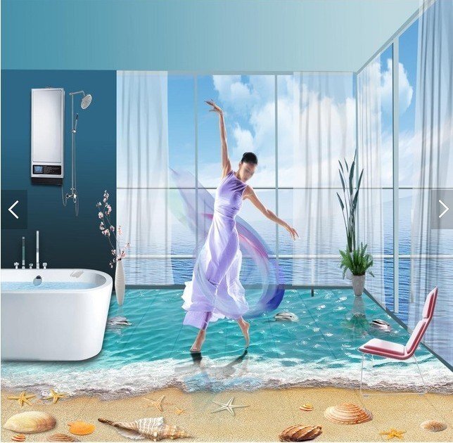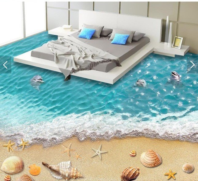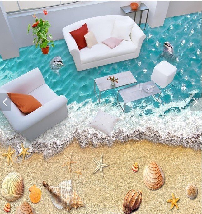 C362 巨大 3D フロアマット 0.5m*0.7m* ビーチ 砂浜 海 貝殻 風景 景色 リフォーム 防音 断熱 滑り止めシート 床 壁 天井 はがせるシール