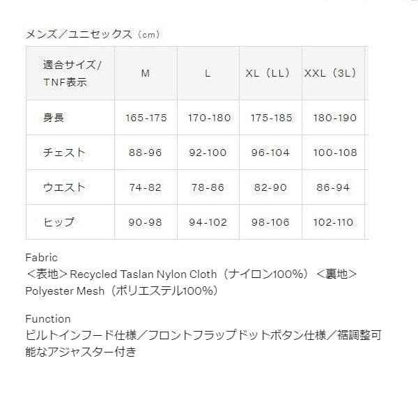 ビルトインフード仕様/フロントフラップドットボタン仕様/裾調整可能なアジャスター付き