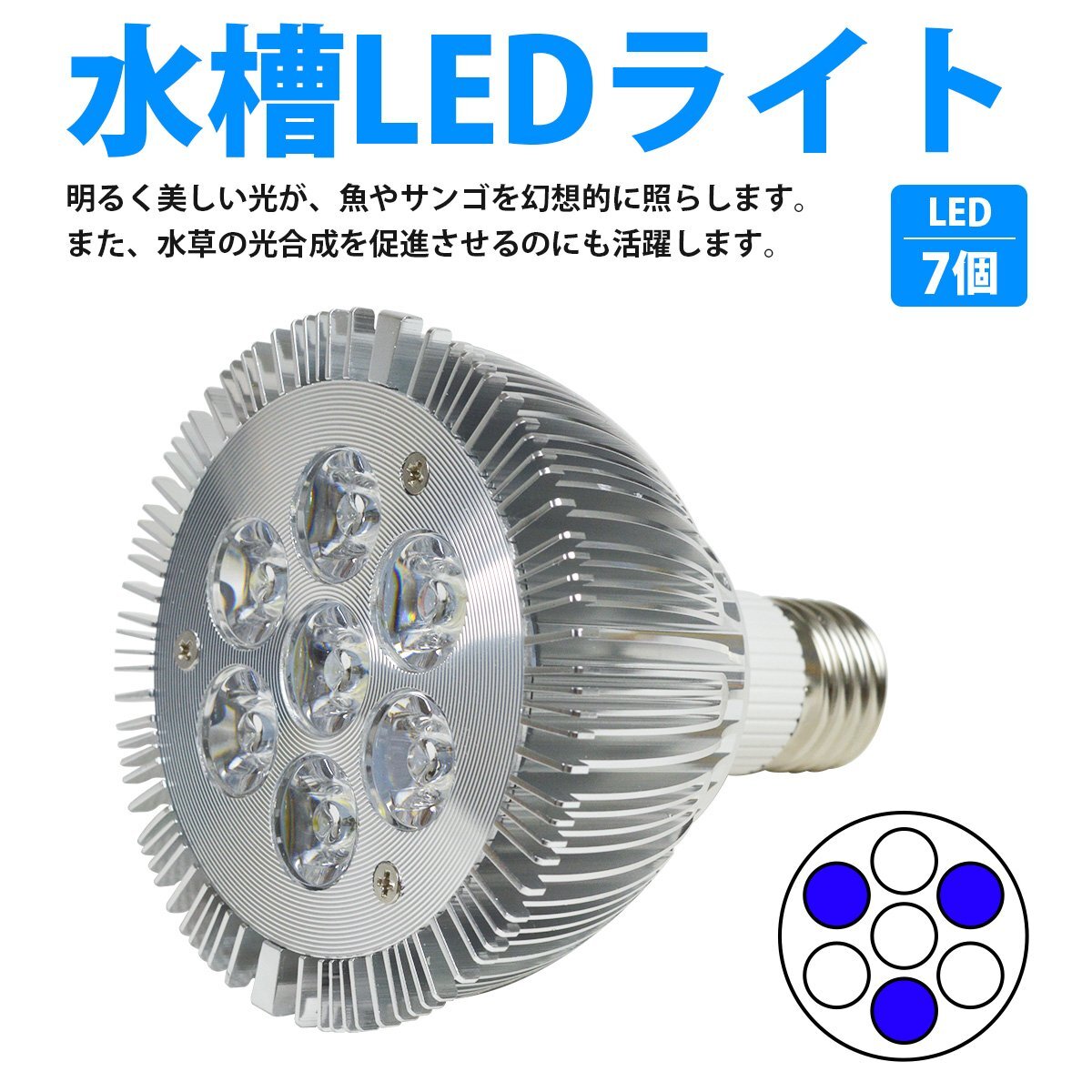 水槽 用 スポット ライト 14W 電球 7LED 白4/青3灯 口金 E26 アクアリウム 電球 照明 植物育成 水草 サンゴ 熱帯魚 観賞魚