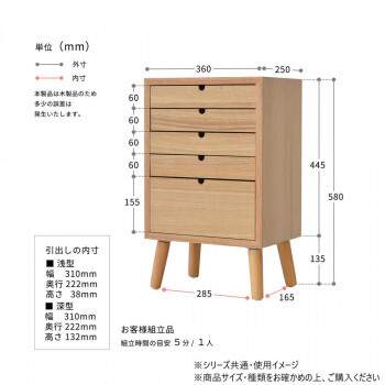 | 仕様 | ラッカー塗装 耐荷重 天板:約25kg 引出し(小・1杯):約10kg 引出し(大・1杯):約10kg:全体:約75kg 組立(1人):約15分 |