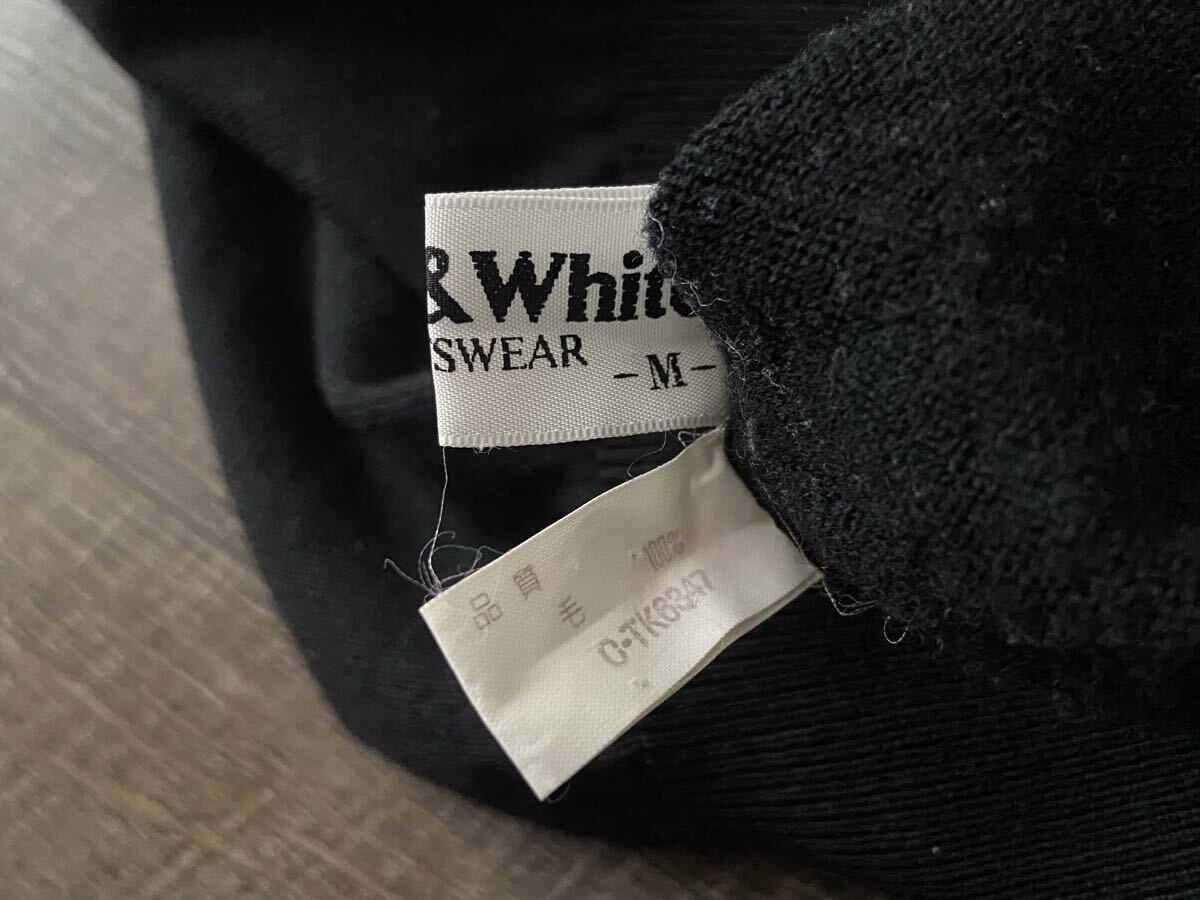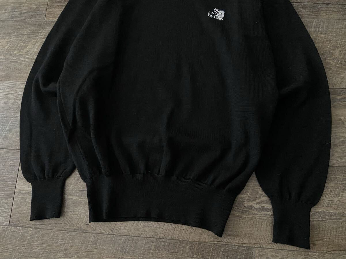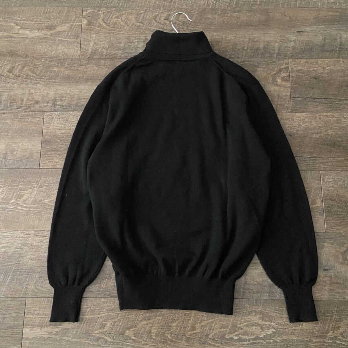 良品 BLACK&WHITE ブラック&ホワイト テリア刺繍 上質ウール100% タートルネック ニット シャツ M 黒 トップス セーター ゴルフ メンズ