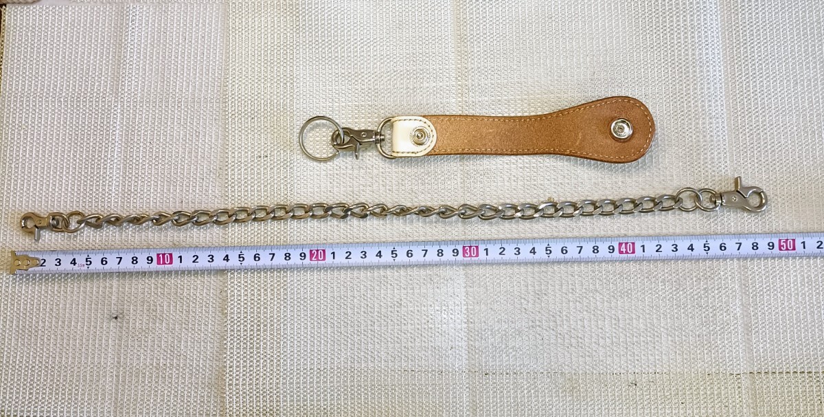 長さはベルトループを除き金具をふくめて約49cmで太さは約10mmです。