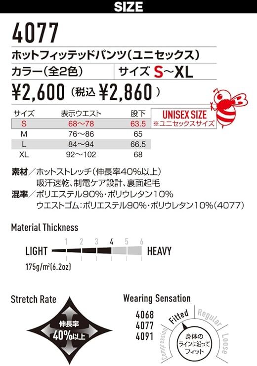 2枚セット★バートル 4077 L ブラック★4WAYストレッチ ホットフィッテッドパンツ★BURTLE