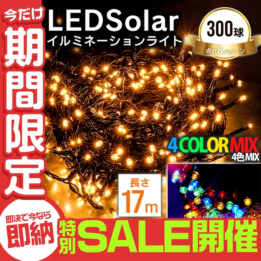 電気代不要! 明るさセンサー付きで暗くなると自動点灯! 今の時代に最適なエコ商品!! 省エネ・長寿命なLEDライトは発熱がほとんどなく、植物に巻いても安心・安全! 屋外でも安心して使用できるようにIP44の防水加工。 多彩な8パターンの点灯モード搭載! コンセント不要なので、電源のない所でも自由にイルミネーションを楽しめます。 LEDを飾り付け、ソーラーパネルを太陽光が良く当たるところへ設置していただくだけで、簡単にご使用いただけます。 お庭の植え込みに、テラスやベランダに! クリスマスイルミネーションにピッタリです! 【商品詳細】 カラー:ミックス LED:300球 点灯パターン:8パターン 防水仕様:IP44 > ソーラーパネル:縦14cm×横9.5cm×厚さ2.5cm 支柱:20cm 電球の間隔:5cm コードの長さ(全体):2m (うちイルミネーション:15m) (ソーラーイルミネーションライト LEDライト ガーデンライト ライトアップ 防犯 クリスマス飾り クリスマスツリー 明るい 自動充電 電源不要 配線不要 夜間自動点灯 庭 ベランダ バルコニー 玄関 店舗 お店 オフィス パーティ 人気 おすすめ WEIMALL) |