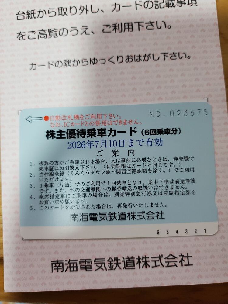 南海電気鉄道 株主優待 6回分【定形郵便送料無料】