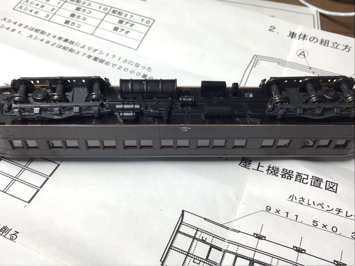 床下機器は説明書通りに制作、車軸発電機は台車と干渉するため除去