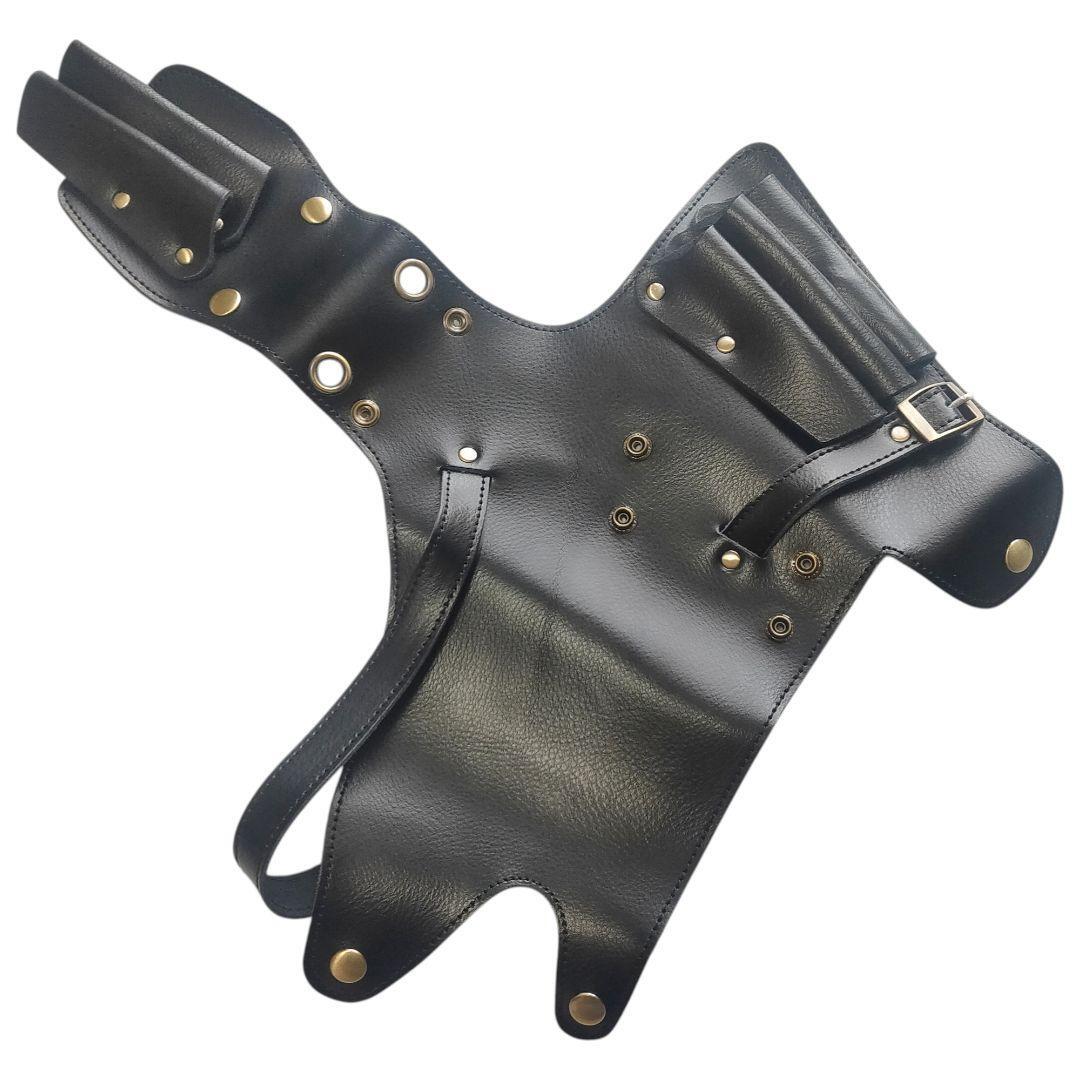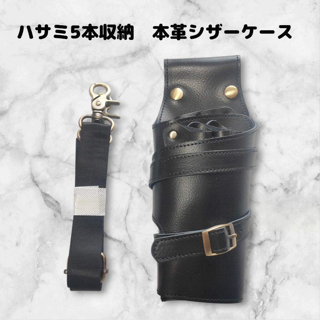 大容量5本のハサミを収納可能です。腰かけベルト付きです。ベルトは最長128cm程ございますので、どのような体型の方にもご使用いただけます。肩掛けも可能でございます。