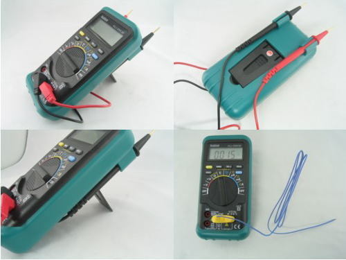 | ●机上での測定に便利なスタンド付 ●テストリード固定機能。 ●ディスプレイホールド,レンジホールド機能 ●オートパワーオフ機能 ●リセット機能 ●ホルスタ,温度プローブを標準装備。 | |