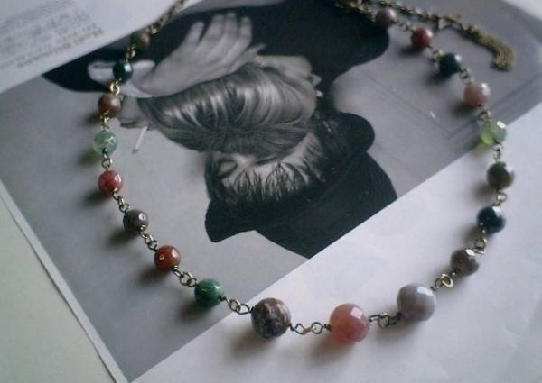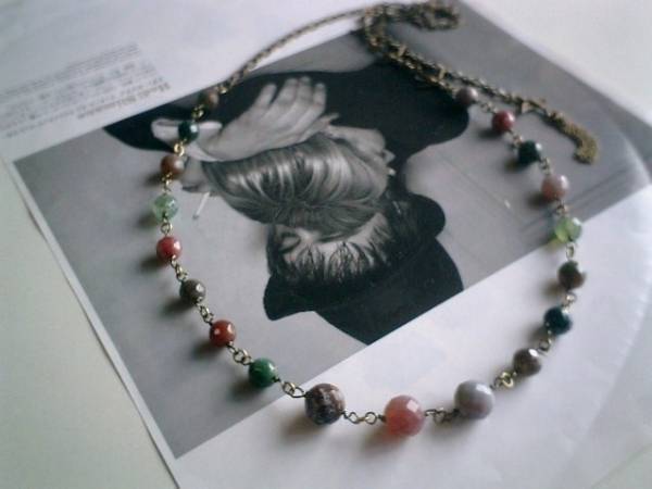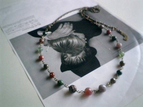 秋色アート・・シリーズです♪やさしい色を集めて・・シックなインディアンアゲートのネックレスです♪シックな色合いのインディアンアゲートに小鳥さんのチェーンを合わせてノスタルジックな表情です♪♪シックなインディアンアゲートは8ミリ、10ミリのランダムカットです♪小鳥さんのデザインチェーンを合わせて可憐な表情です♪長さは全長75センチ位で調節自由です♪ブレスレットにされても素敵です♪お揃いのネックレスやブレスレットも出品しています♪♪シンプルで飽きのこないいつまでも着けられるデザインを考えて作りました!ハンドメイドをご理解頂いてノークレーム、ノーリターンでお願いします