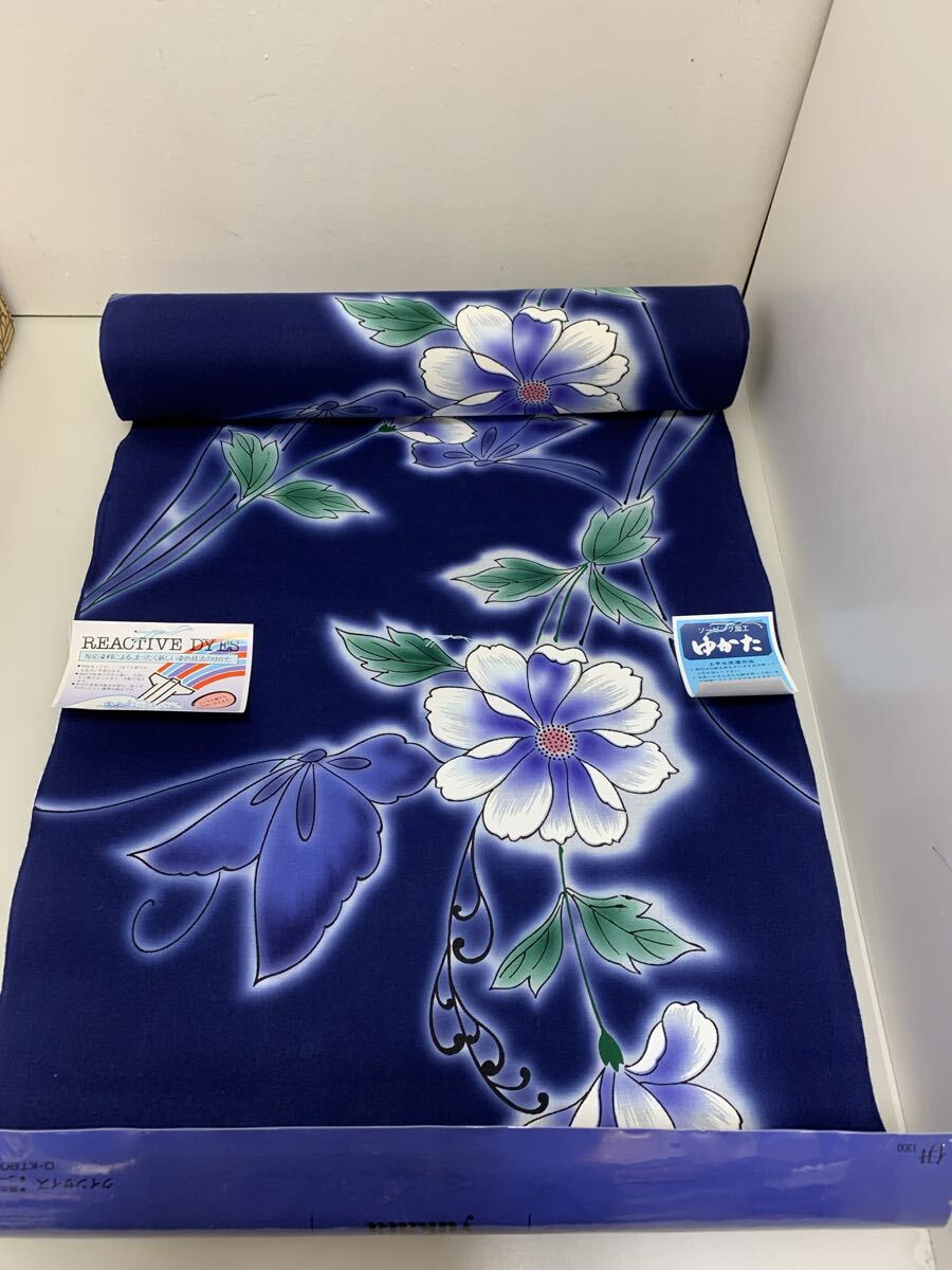 ★★山本寛斎デザイン 藍地 花柄 青紫 ダイナミック 未使用 浴衣地 反物 保管品 日本製 綿100%★★