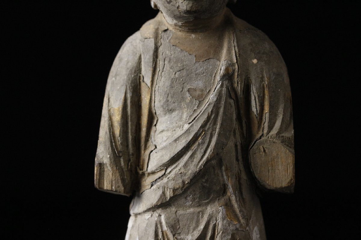 * * * 商品詳細 * * * ここでしか出逢うことのできない唯一の美をご紹介させて頂きます。 時代感のある肌地をした十一面観音菩薩像のご紹介です。 凛々しさのある精悍な顔立ちをしており、緊張感と柔和さの交る独特な雰囲気があります。 背面には鮮やかな金色が残り、当時の美しい姿が想像されます。 経年を経たものならではの重厚な空気を纏った逸品です。 この機会に是非お求めください。 ■サイズ/横5cm×高17.5cm×奥行3㎝ ■状態/経年による傷み、スレ、キズ、腐食、割れ、欠け、剥げ、パーツ欠損がございます。 ※写真にてご確認、ご了承の上ご入札下さい。 * * * 支払詳細 * * * Yahoo!かんたん決済 * * * 発送詳細 * * * 入金確認後3営業日以内に発送致します。 ※直接引き取りも可能です。 60~160サイズにつきましては 佐川急便、ゆうパックのどちらかで発送いたします。 ゆうパック発送の場合、弊社の発送日から追跡サービスに問合せ番号が反映されるまで 約1日ほどお時間がかかりますのでご了承下さい。 * * * 注意事項 * * * 運送中の破損があった場合は速やかに当社までご連絡下さい。 保険を利用するのに受取連絡後に運送会社による現場での破損状況確認が必要となります。 勝手に返送されますと保険の適用外となりますのでご注意ください。 * * * * * * お問い合わせ:082-236-8669 |