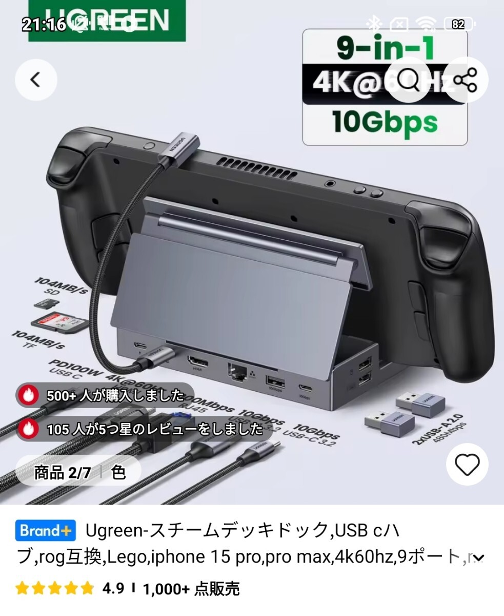 おまけで未使用のGulikitのジョイスティック、また使っていた冷却ファン、Ugreenのドッキングステーションを付けます。