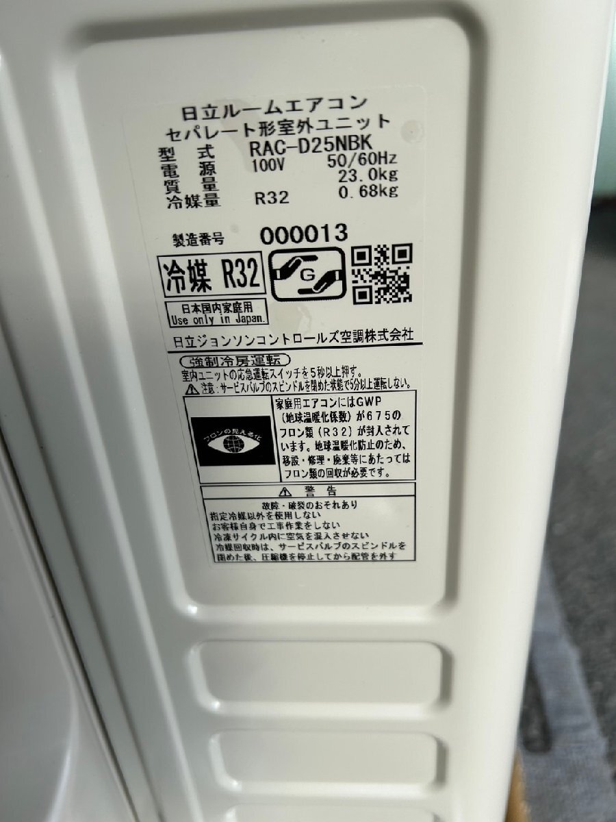 日立/RAC-D25NBK/エアコン/室外機のみの出品となります。状態は長期倉庫に保管された為、梱包の痛みあります。写真以外にも本体に凹みや傷が有るかもしれません。動作につきましては室内機が有りませんので動作未確認となります。動くかどうかの保証が致しかねますのでノークレーム・ノーリターンでお願いします。超特価の16800円スタートでお願いいたします。落札価格に別途消費税がかかります。発送は佐川急便の送料着払い(保険加入不可)を予定しております。システム上送料0円と表示されてしまいますが、送料着払い運賃のご負担となりますのでご了承ください。エアコンの室内機のみ、室外機のみの商品はほかの販路でも販売させていただいておりますので、ご希望の場合はなるべく早くご入札をお願いします。入札がない場合は取り消しをすることがございますのでご注意ください。ほかにも多数出品しておりますのでよろしくお願いいたします。
