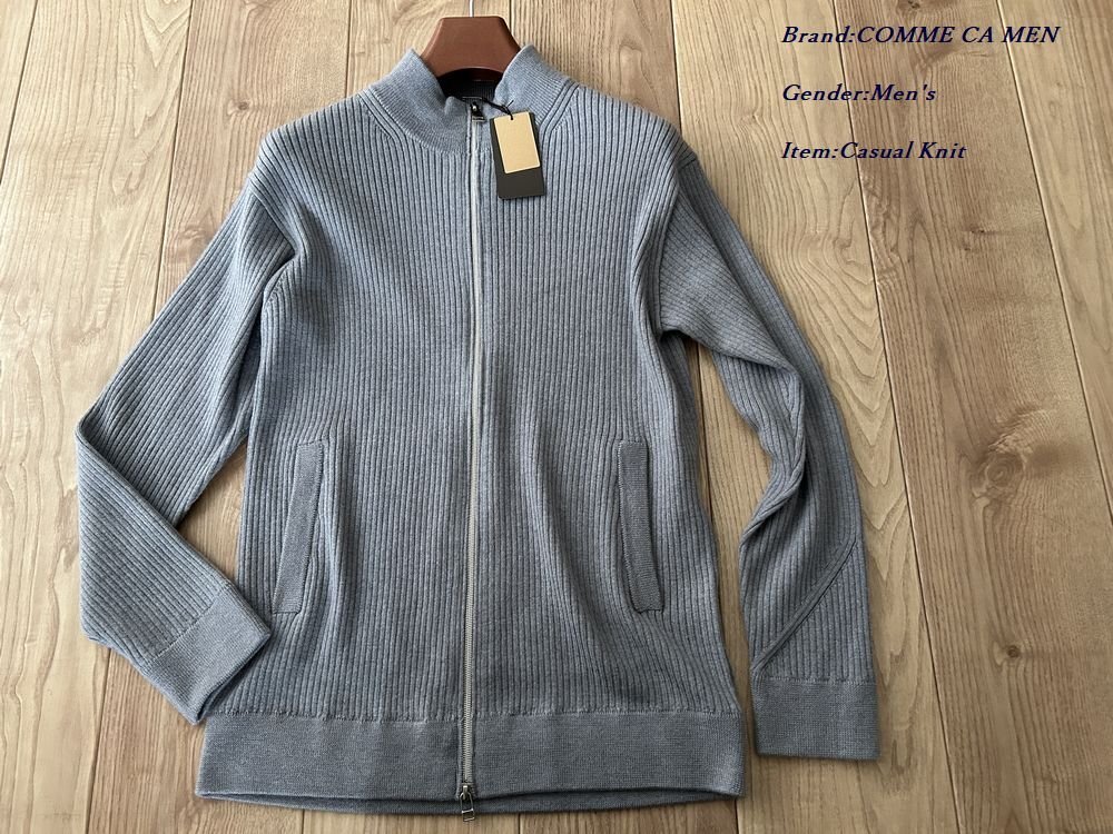 新品サンプル COMME CA MEN コムサメン リブストレッチ ジップアップニット 04グレー Mサイズ 39KI07 定価23,100円