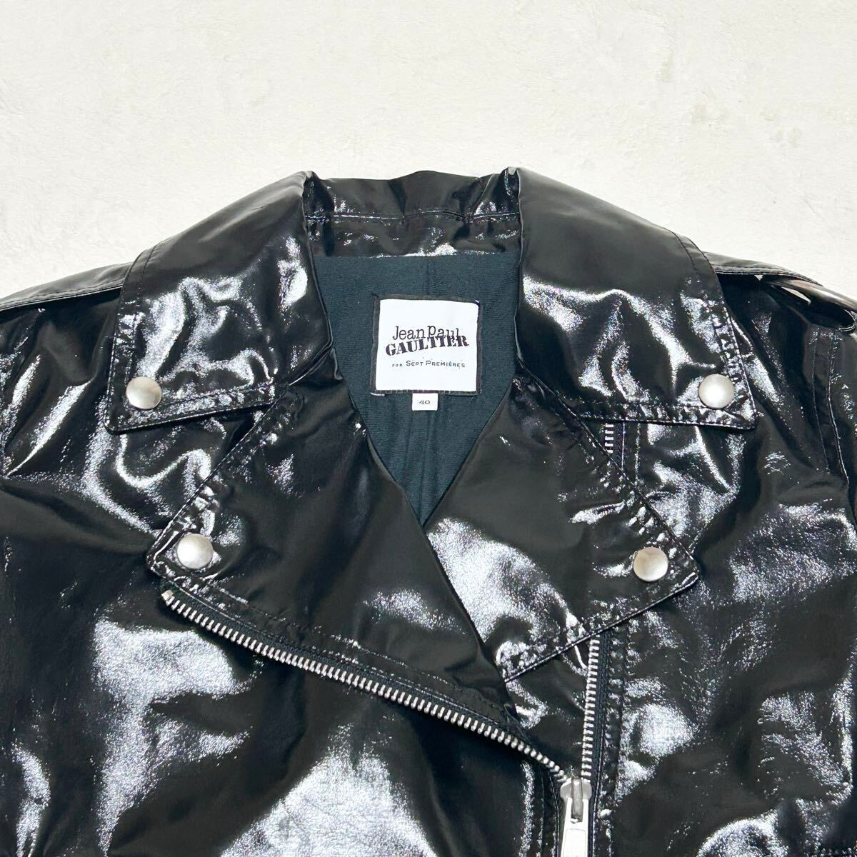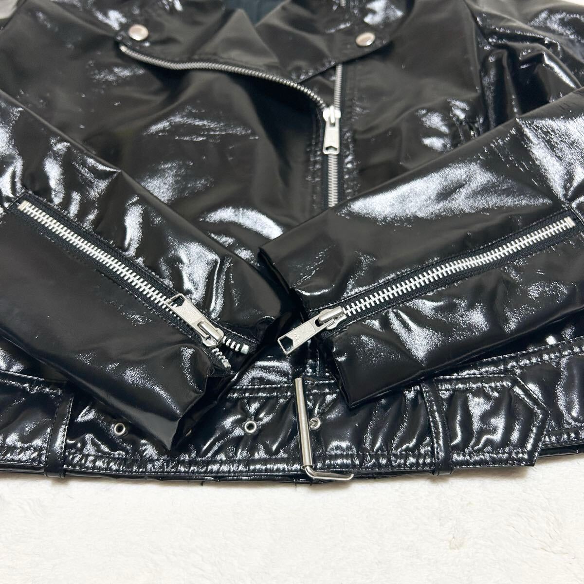 素材は光沢のあるポリウレタンコーティングのダブルライダースジャケット です。
