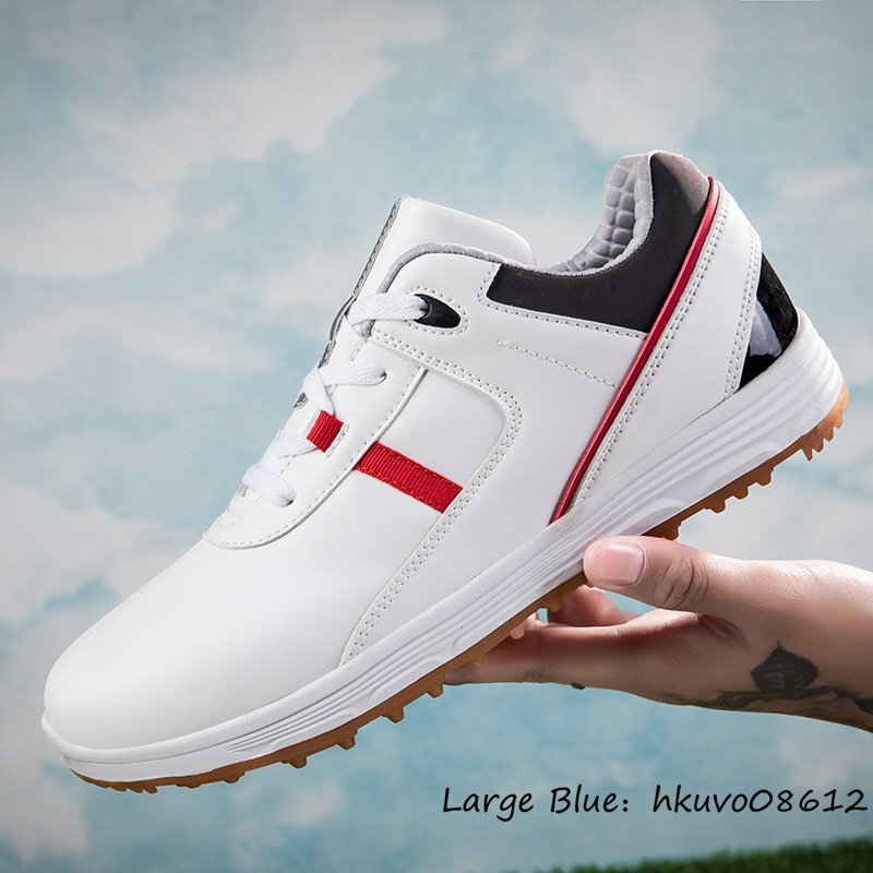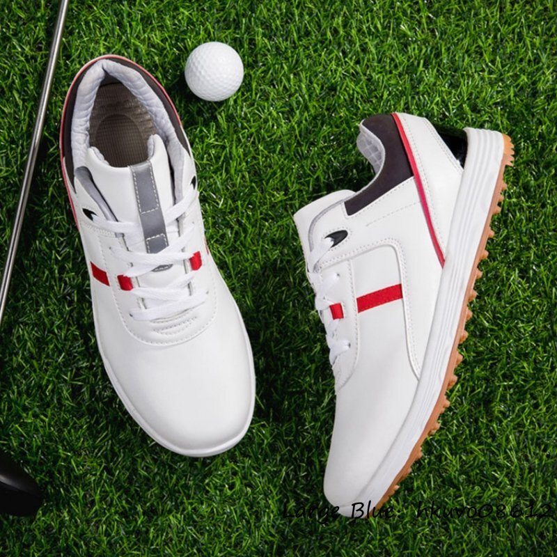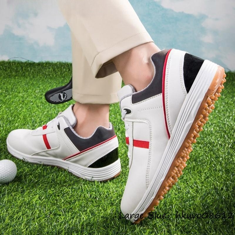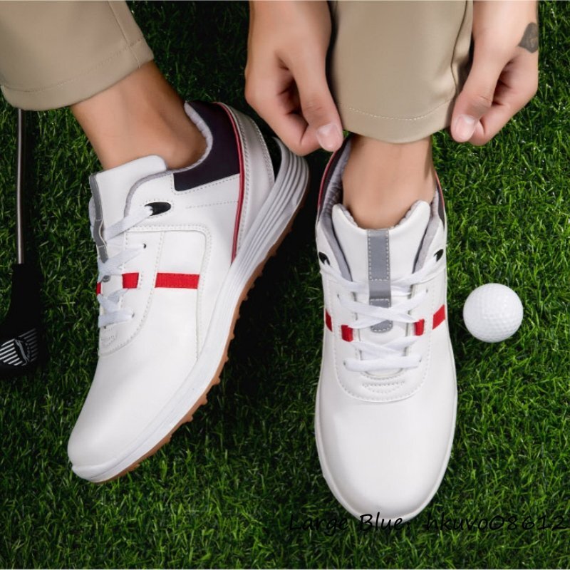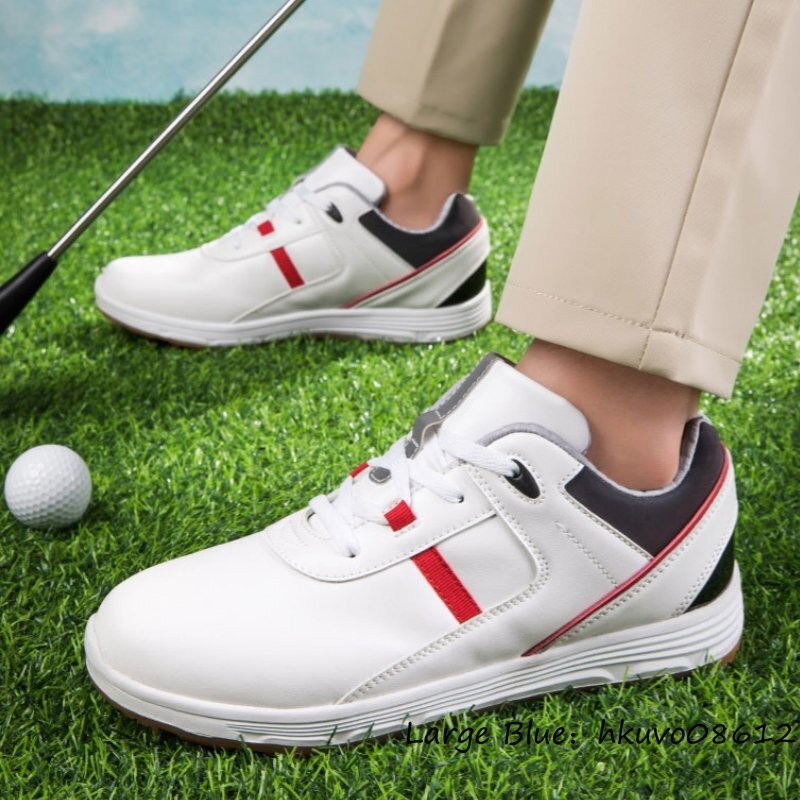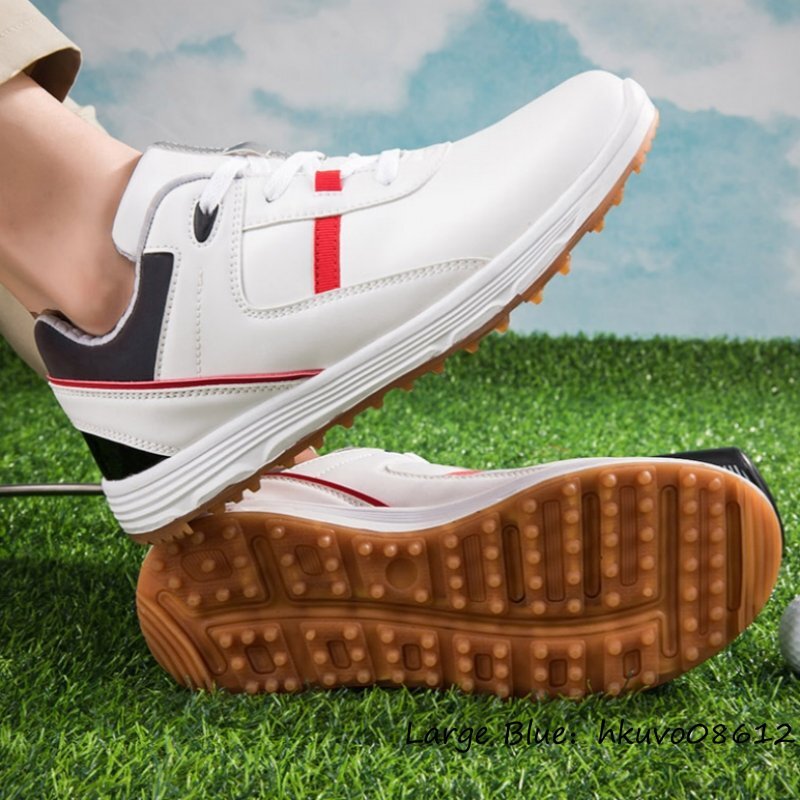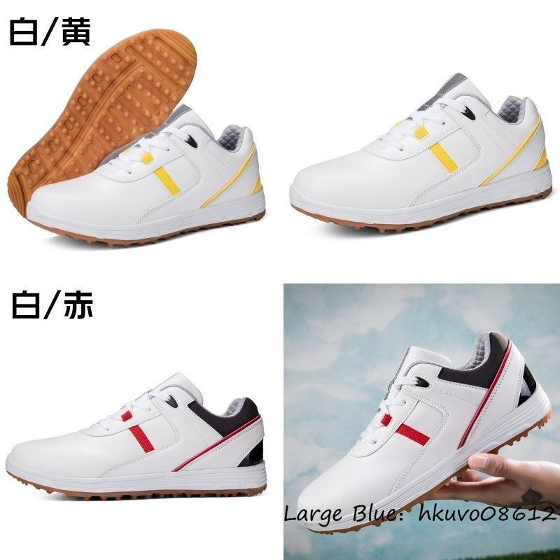 希少品■ゴルフシューズ 男女兼用 スニーカー スポーツシューズ Golf shoes 切替 メンズ 紳士靴 運動靴 幅広 防滑 耐磨撥水 白/赤 25.0cm