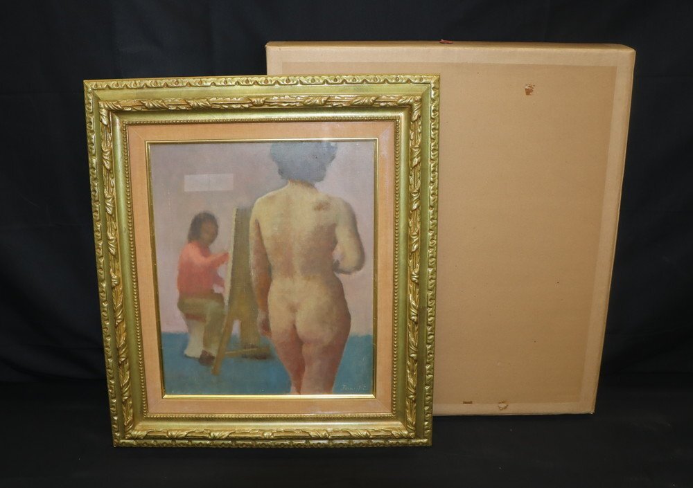 | 商品名 | 【江】寺井力三郎『画家とモデル』油彩画 模写 サイン有 8号 約66.5㎝×58.5㎝ 古美術品(人物画額装絵画アート)XZ522 UTsree OTDBxxat |