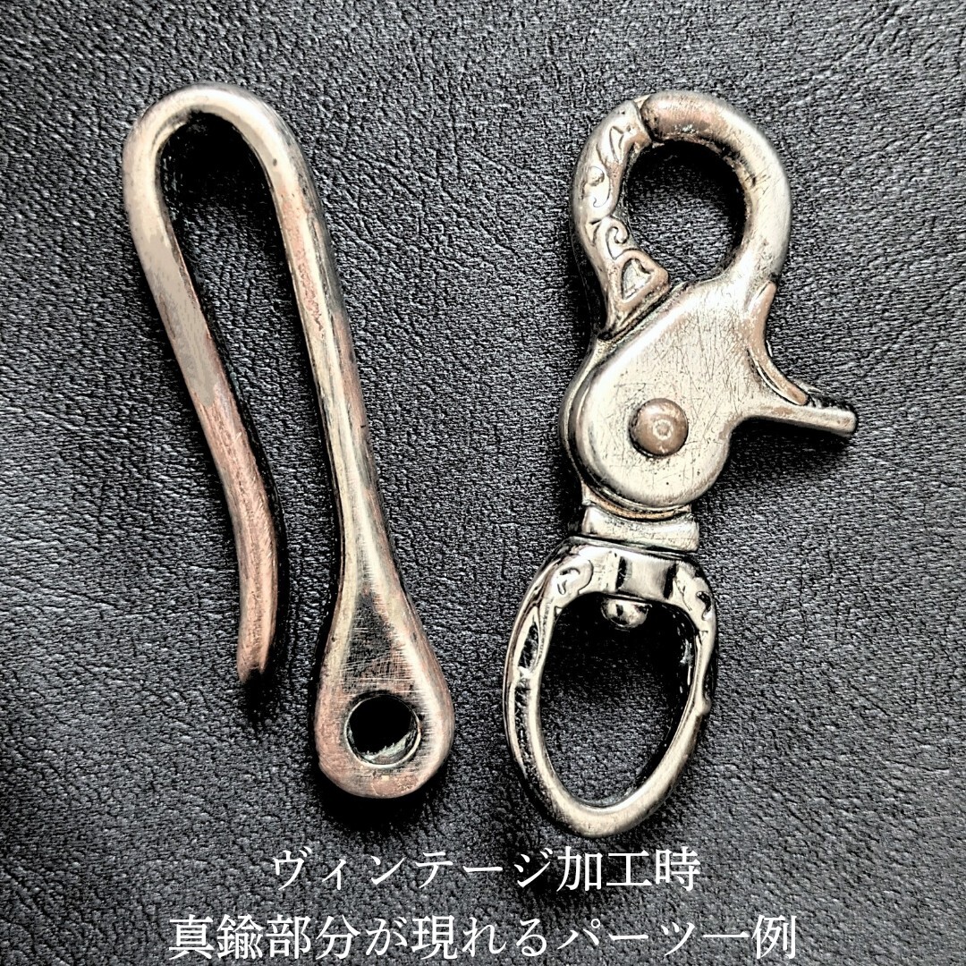 真鍮製シルバーカラーのヴィンテージ品は徐々に下地の真鍮部分が現れますが、同様の現象はヴィンテージ加工品にも起こります。貴重な味のある経年変化モノです。パーツの一例は画像でご確認下さい。
