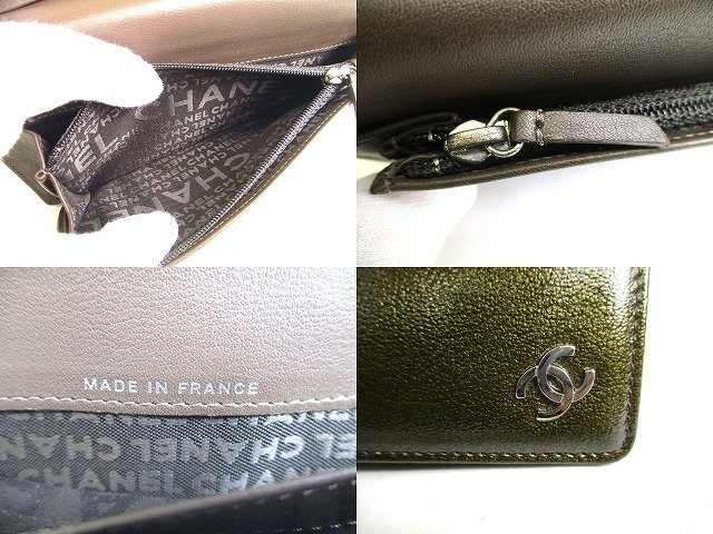 a052 【未使用保管品】 CHANEL シャネル CC ココマーク パテントレザー 2つ折り長財布 ロングウォレット メンズ レディース 未使用保管品の為とても綺麗なお品です(新品同様の状態ですが、未開封の新品ではないので一見わかりにくい些細な傷や汚れは御了承くださいませ。) 【ブランド】CHANEL 【カラー】オリーブグリーン 【素材】パテントレザー 【サイズ】幅:約10.5cm 高さ:約18cm 奥行き:約2cm ※あくまでも実寸なので多少の誤差はあるかもしれませんのでご了承ください。 【参考定価】-円 【製造刻印】1178**** 【型番】- 【機能】札入れ×1、小銭入れ×1、カード入れ×8、ポケット×3 【付属品】シリアルシール、箱 【商品状態 】A ランク |