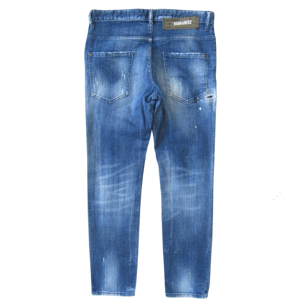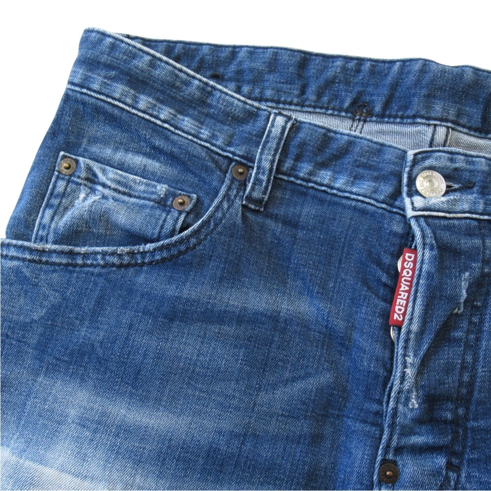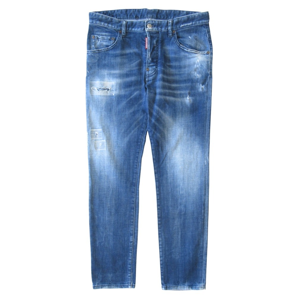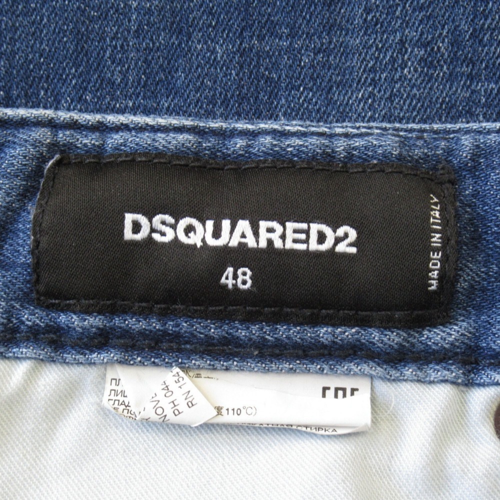 美品 DSQUARED2 ディースクエアード デニム スリム パンツ ストレッチ ダメージ加工 サイズ48 インディゴブルー